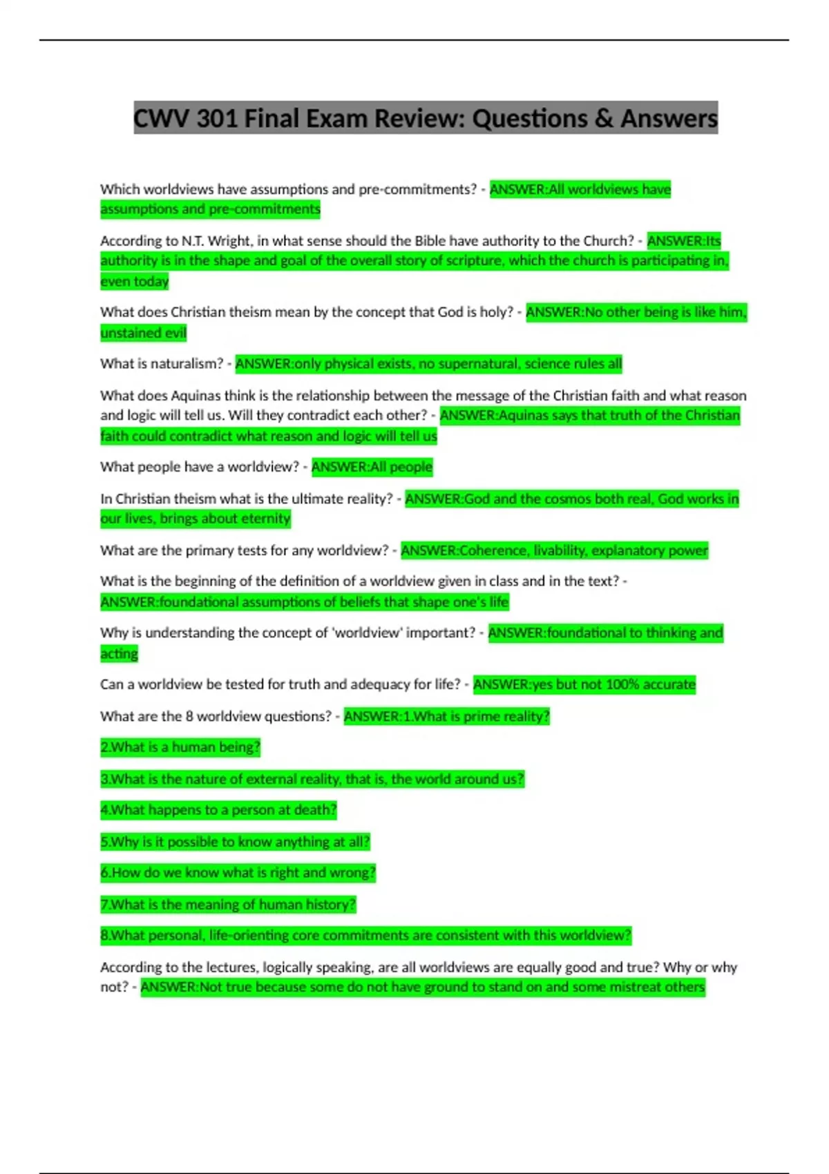CWV 301 Final Exam Review: Questions & Answers