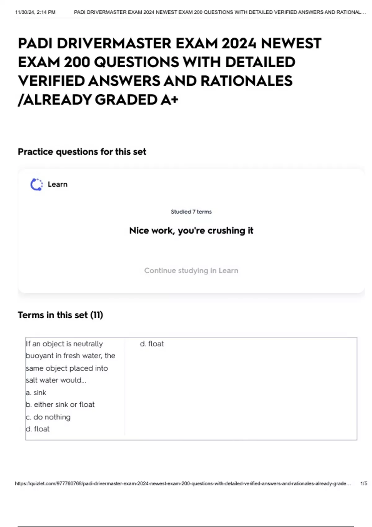 https://quizlet.com/977760768/padi-drivermaster-exam-2024-newest-exam-200-questions-with-detailed-verified-answers-and-rationales-already-grade… 1/5