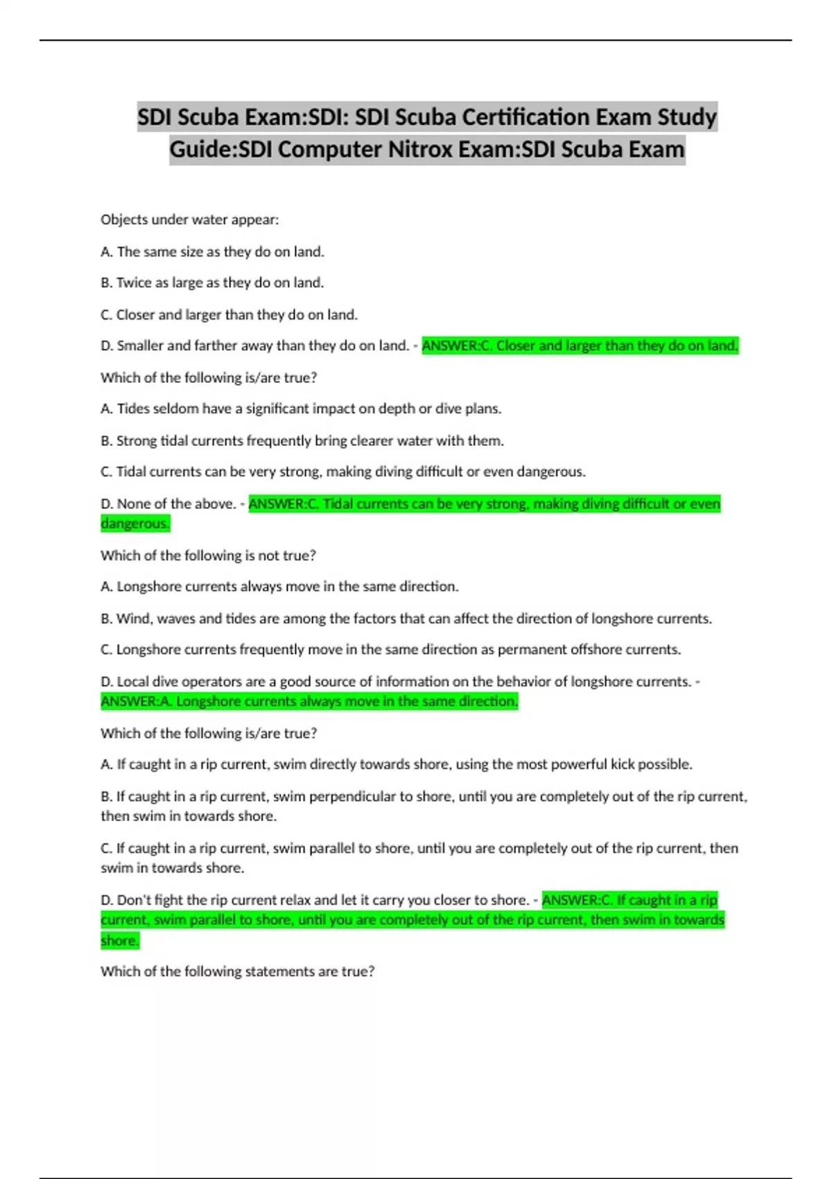 Guide:SDI Computer Nitrox Exam:SDI Scuba Exam