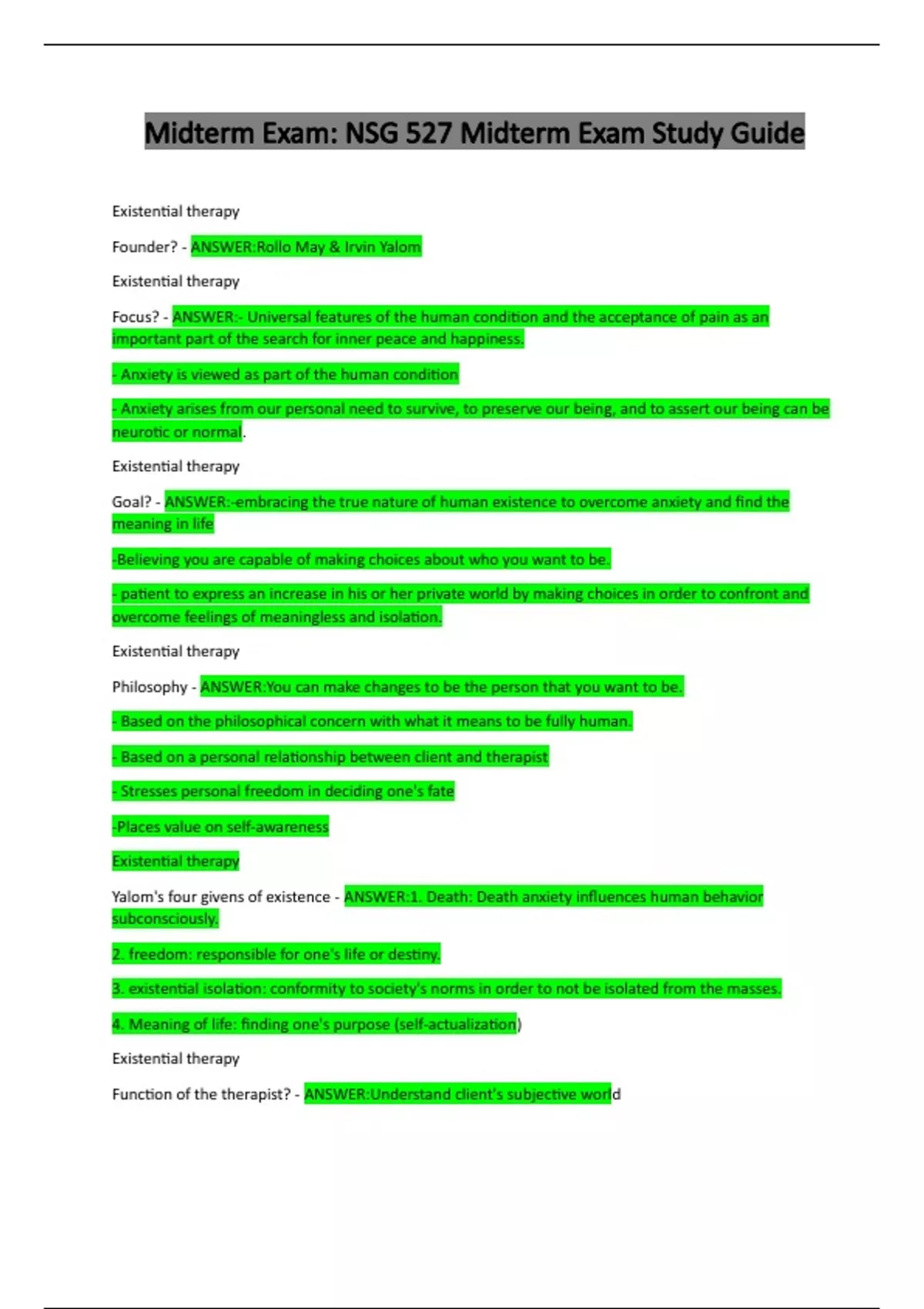 Midterm Exam: NSG 527 Midterm Exam Study Guide