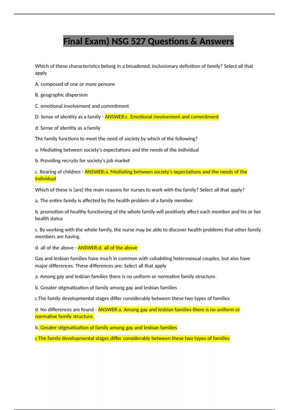 the life cycle. - ANSWER:b. It consists of comprehensive, holistic perspective by which not only the family
