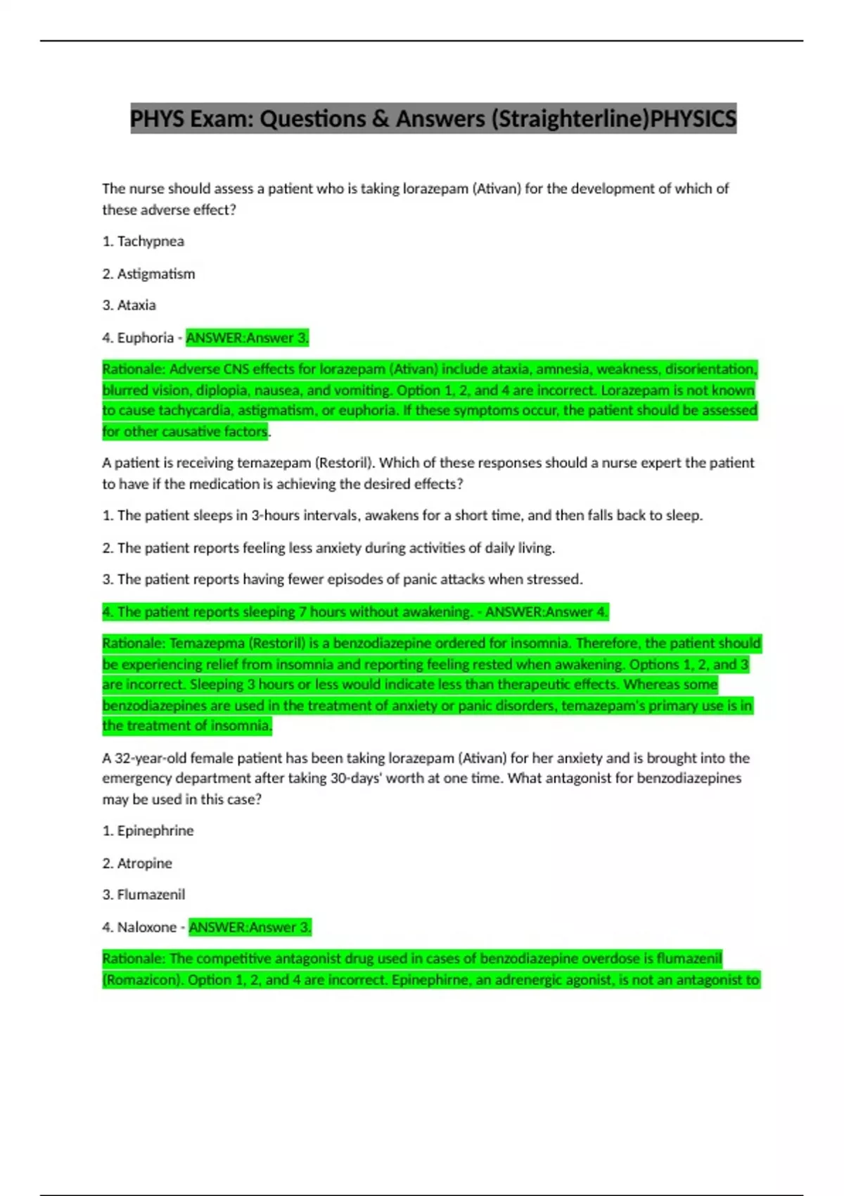 PHYS Exam: Questions & Answers (Straighterline)PHYSICS