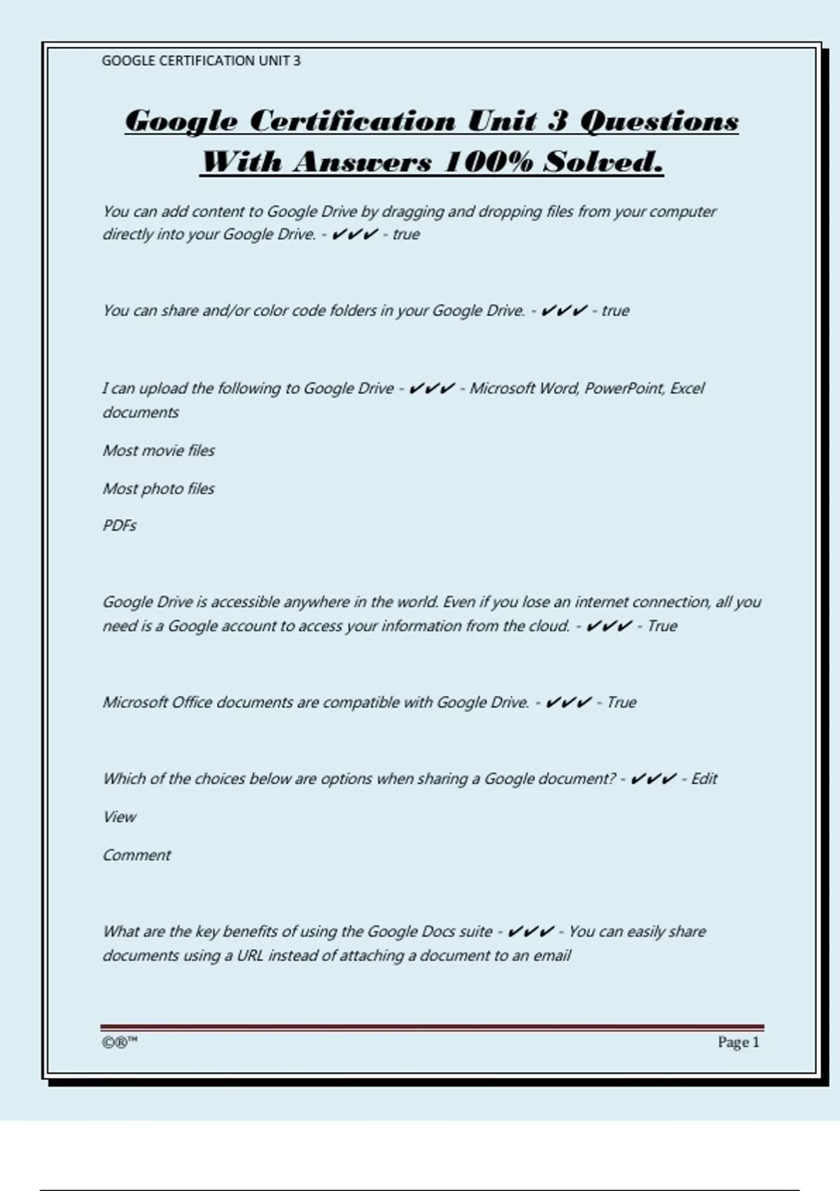 Google Certification Unit 3 Questions With Answers 100% Solved.