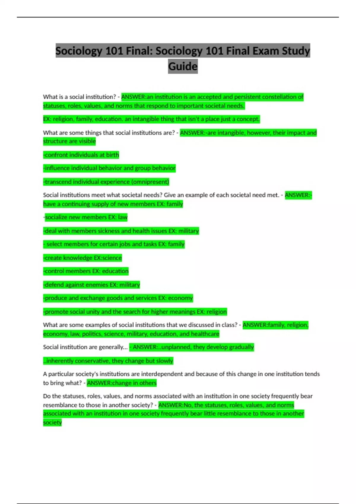 Social institution are generally... - ANSWER:..unplanned, they develop gradually