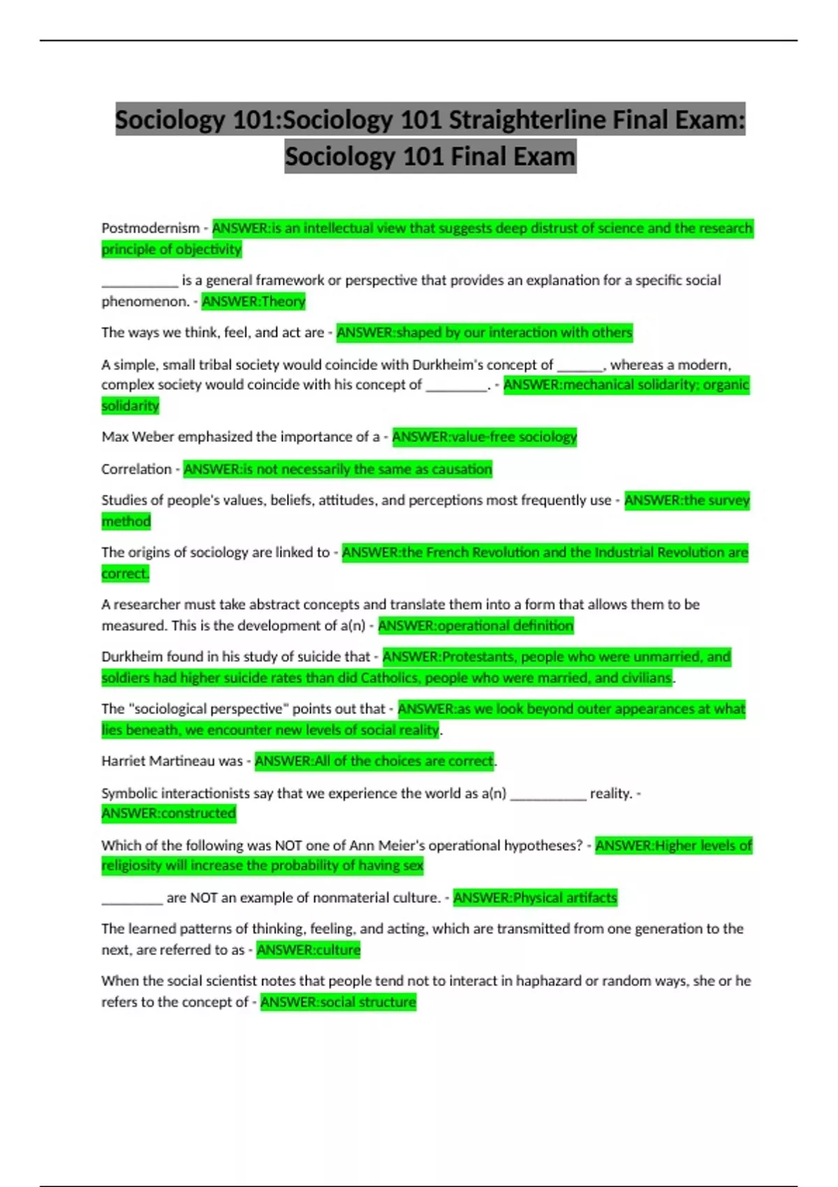 Sociology 101:Sociology 101 Straighterline Final Exam: Sociology 101 Final Exam