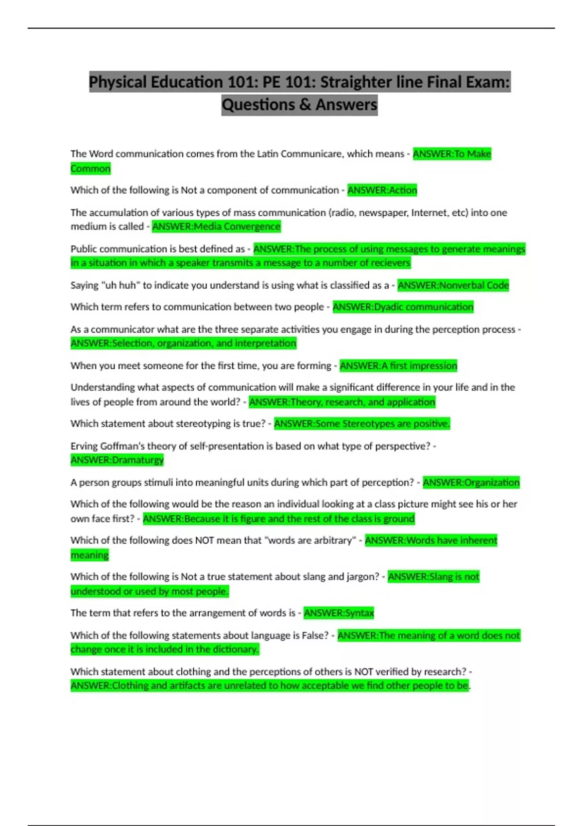 Public communication is best defined as - ANSWER:The process of using messages to generate meanings