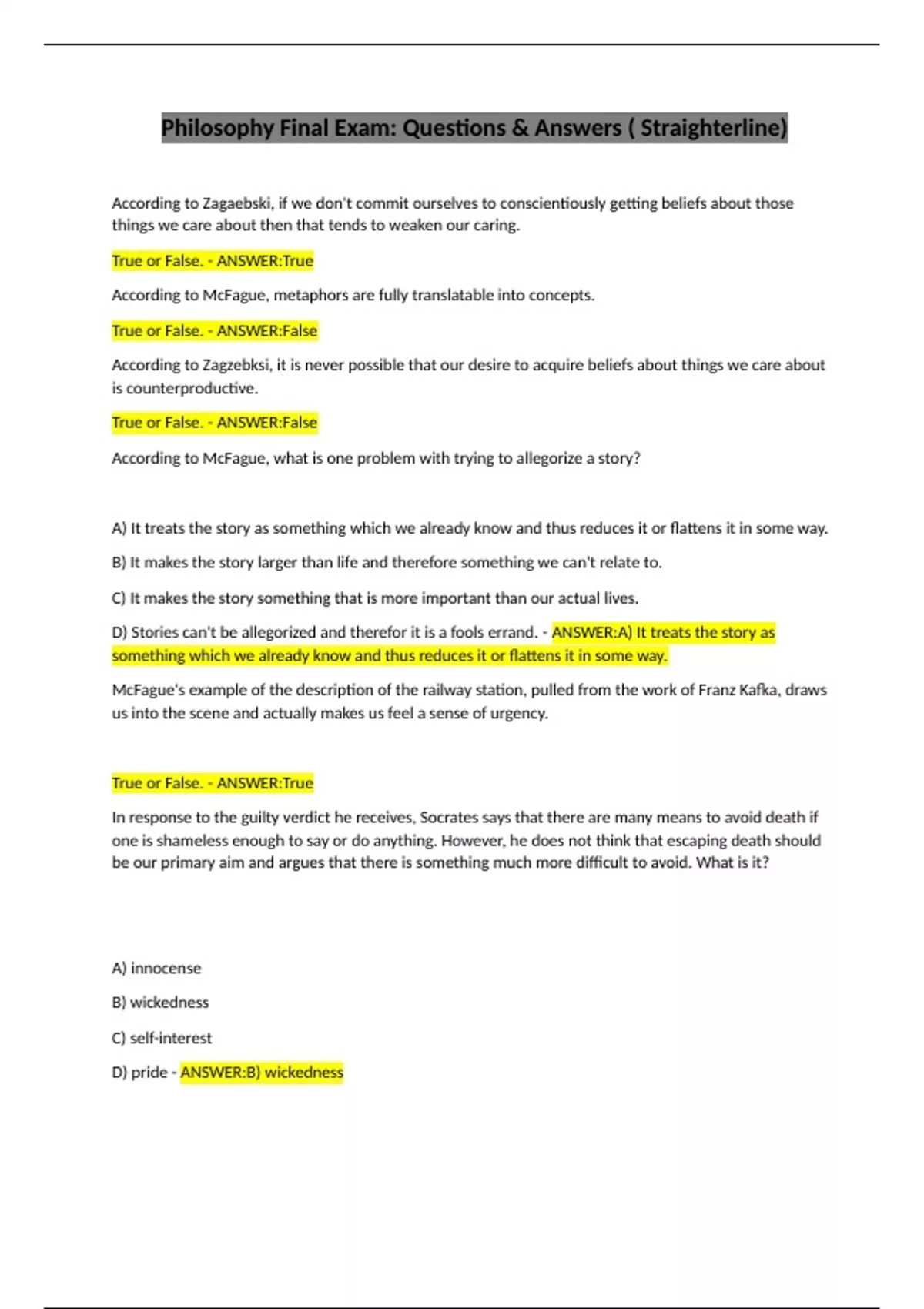 D) pride - ANSWER:B) wickedness