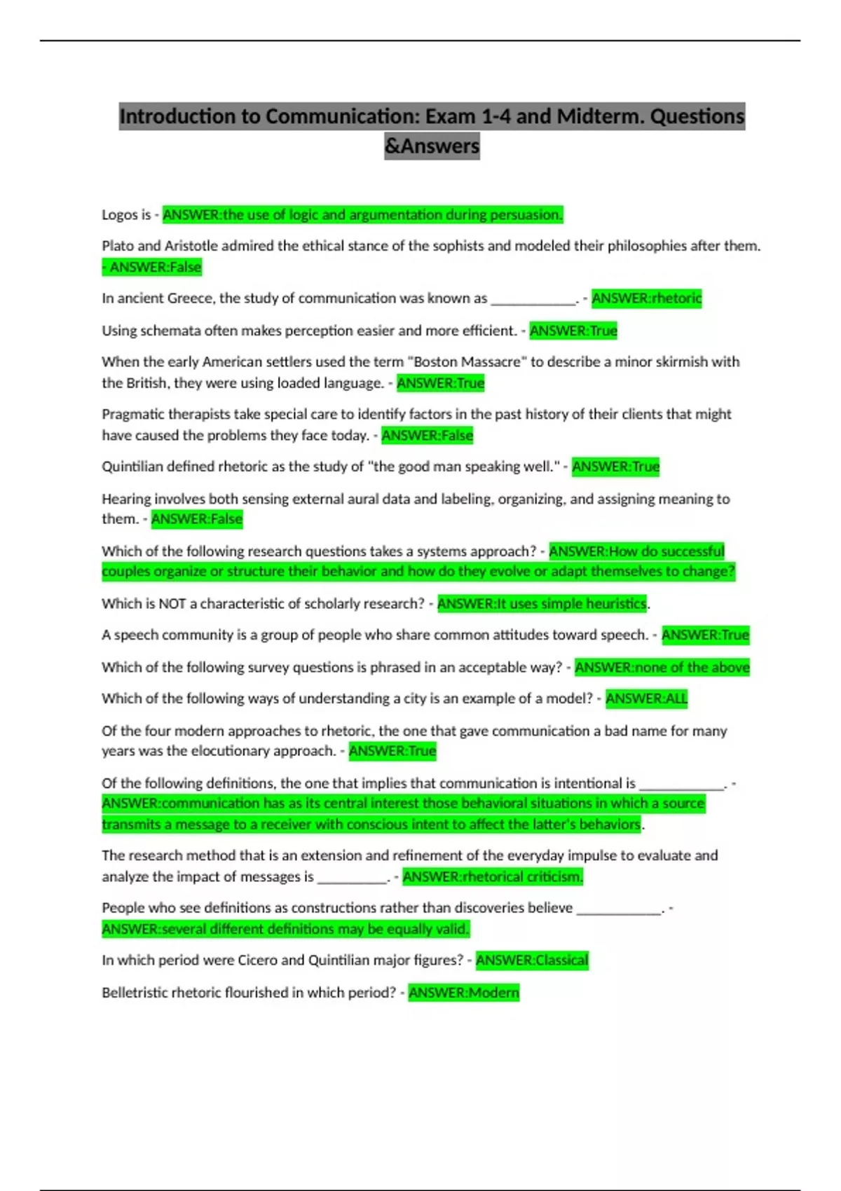 Introduction to Communication: Exam 1-4 and Midterm. Questions &Answers