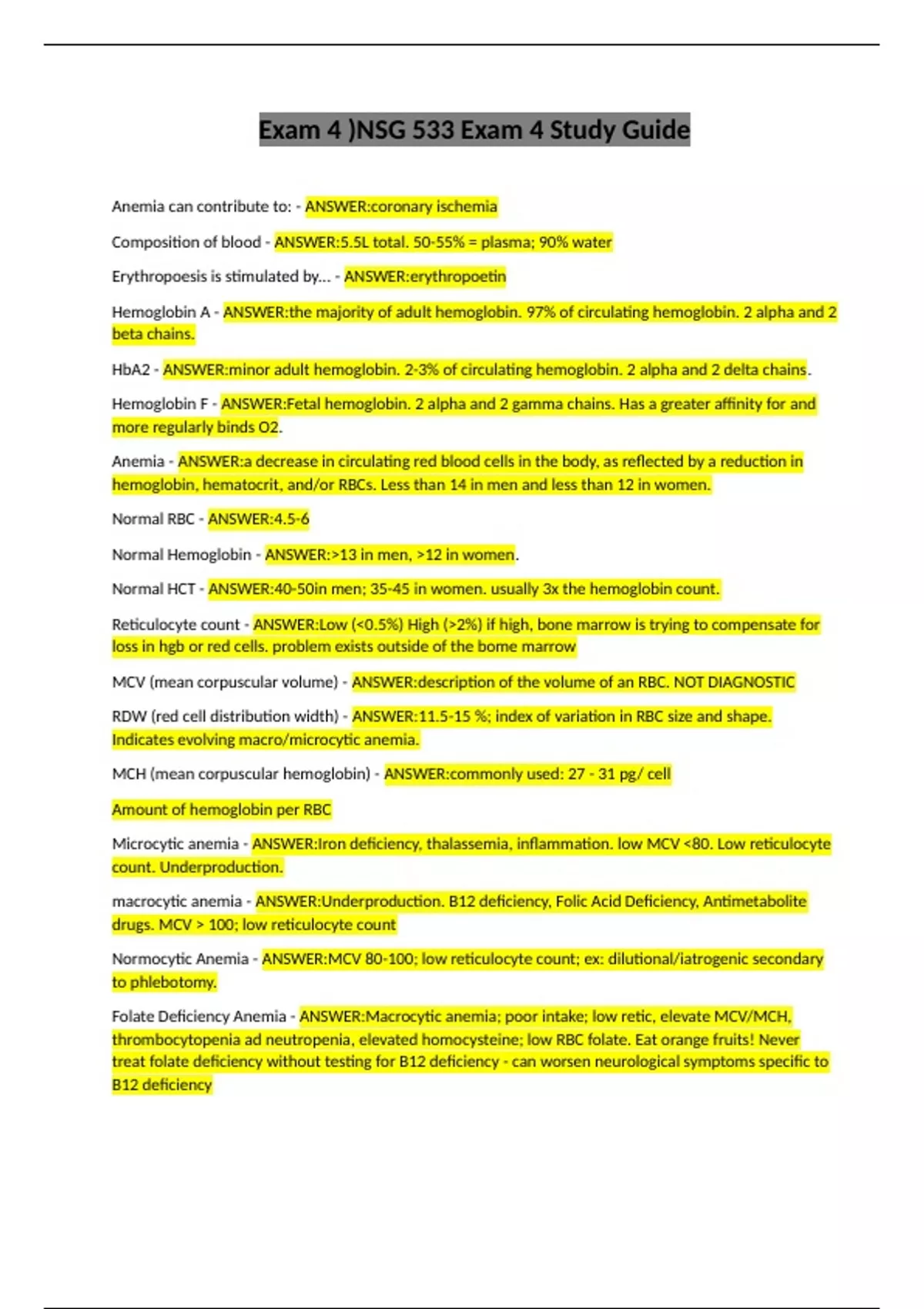 Exam 4 )NSG 533 Exam 4 Study Guide