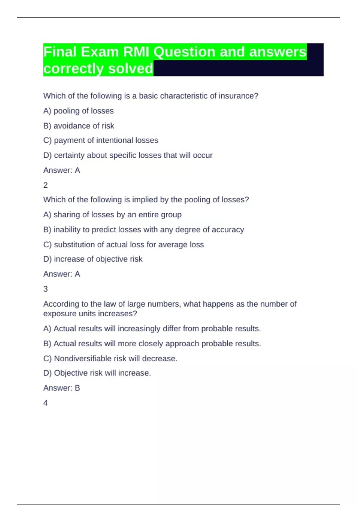 Answer - correct answer ✔B