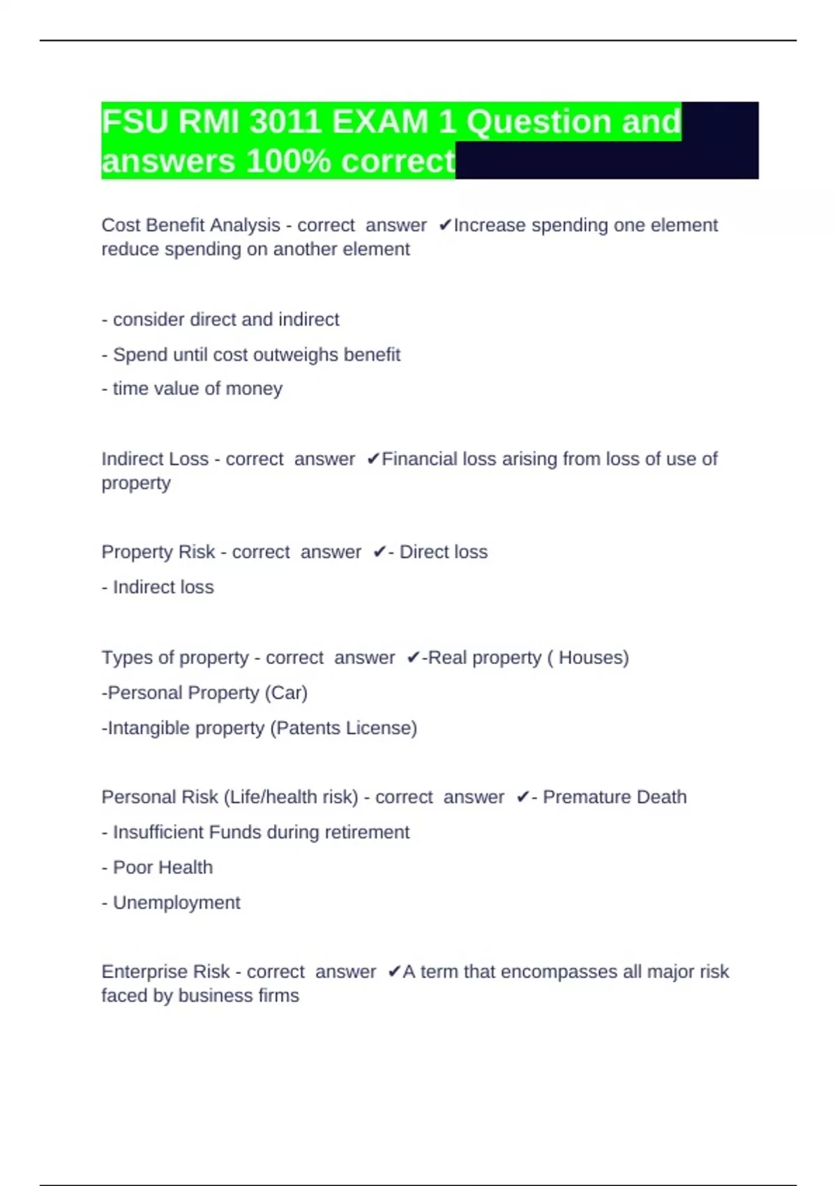 Enterprise Risk - correct answer ✔A term that encompasses all major risk