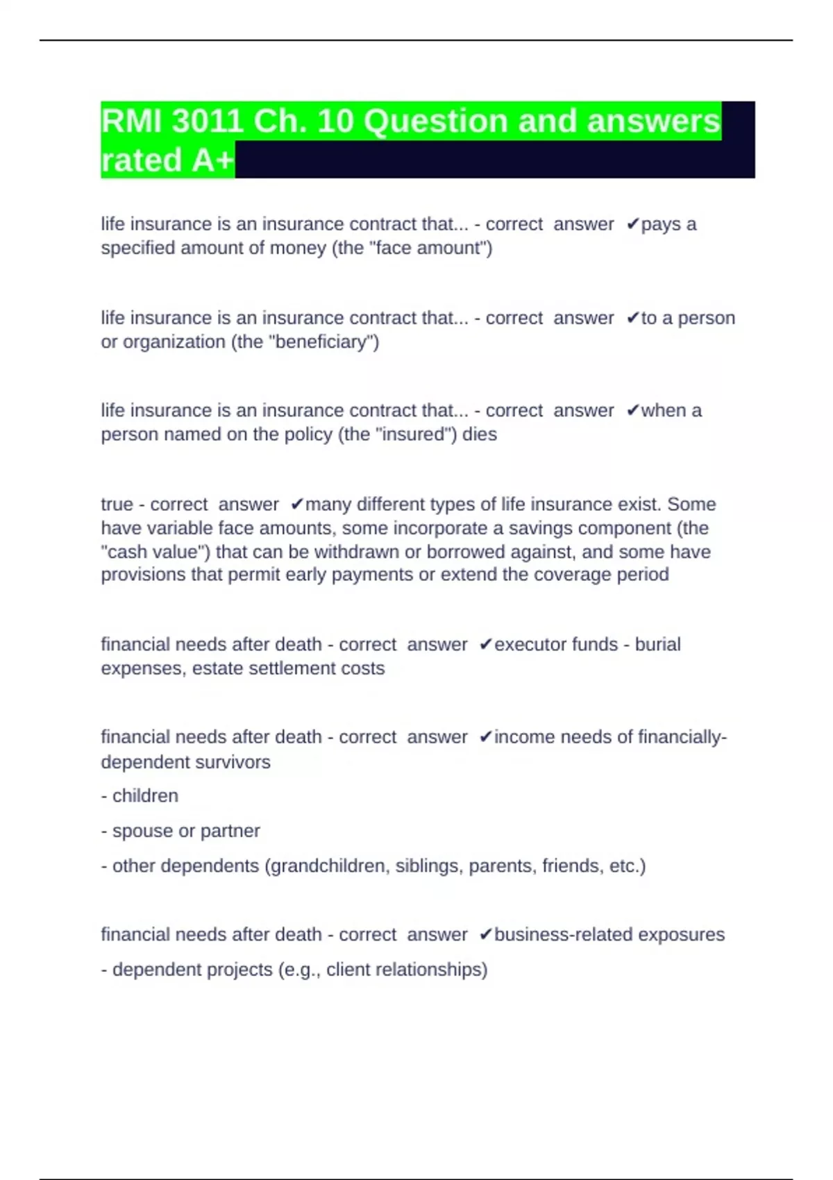 life insurance is an insurance contract that... - correct answer ✔pays a