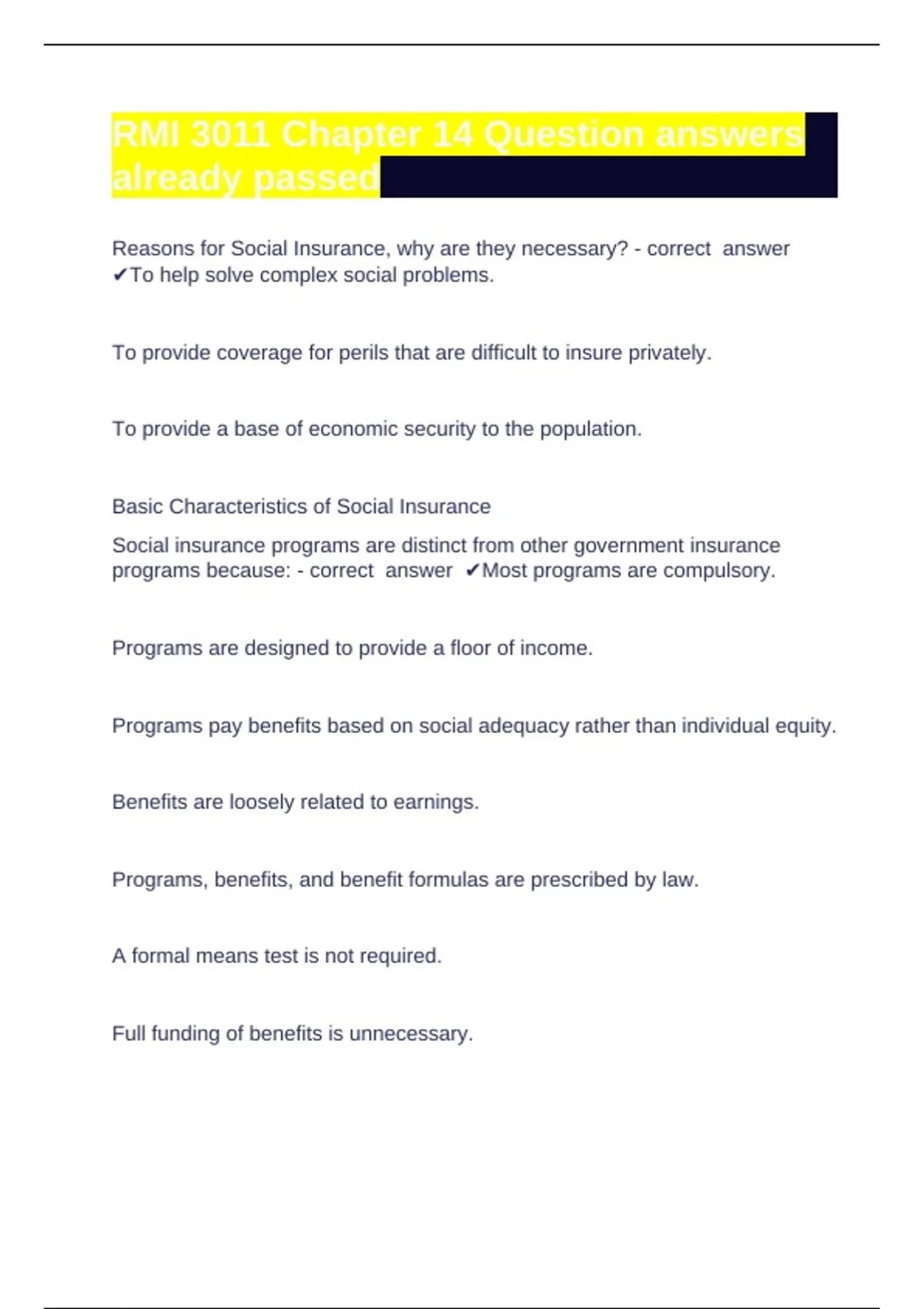 Reasons for Social Insurance, why are they necessary? - correct answer