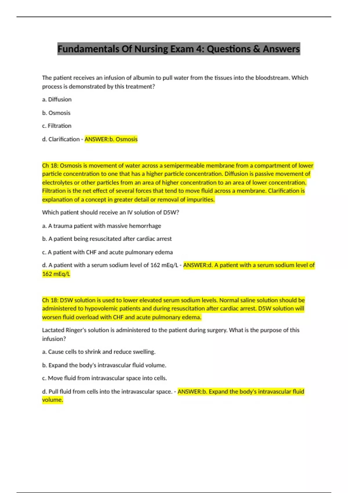 Fundamentals Of Nursing Exam 4: Questions & Answers