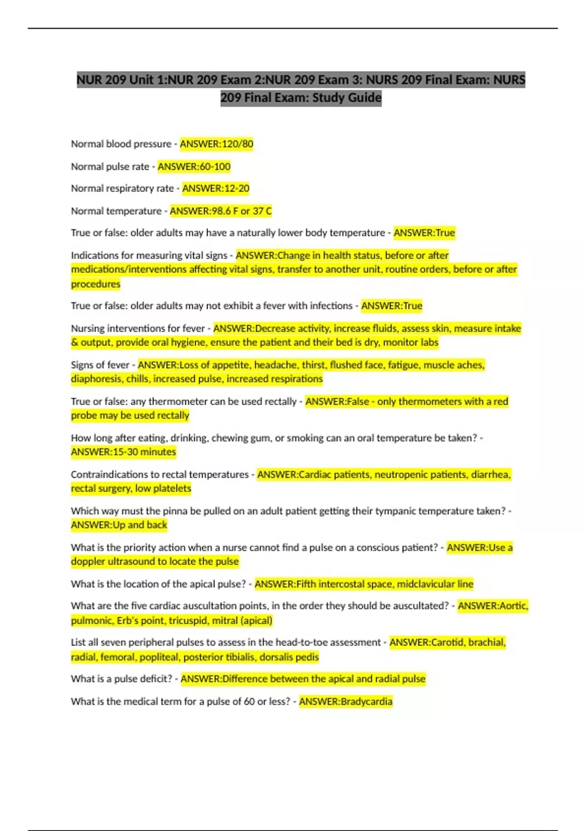 NUR 209 Unit 1:NUR 209 Exam 2:NUR 209 Exam 3: NURS 209 Final Exam: NURS 209 Final Exam: Study Guide