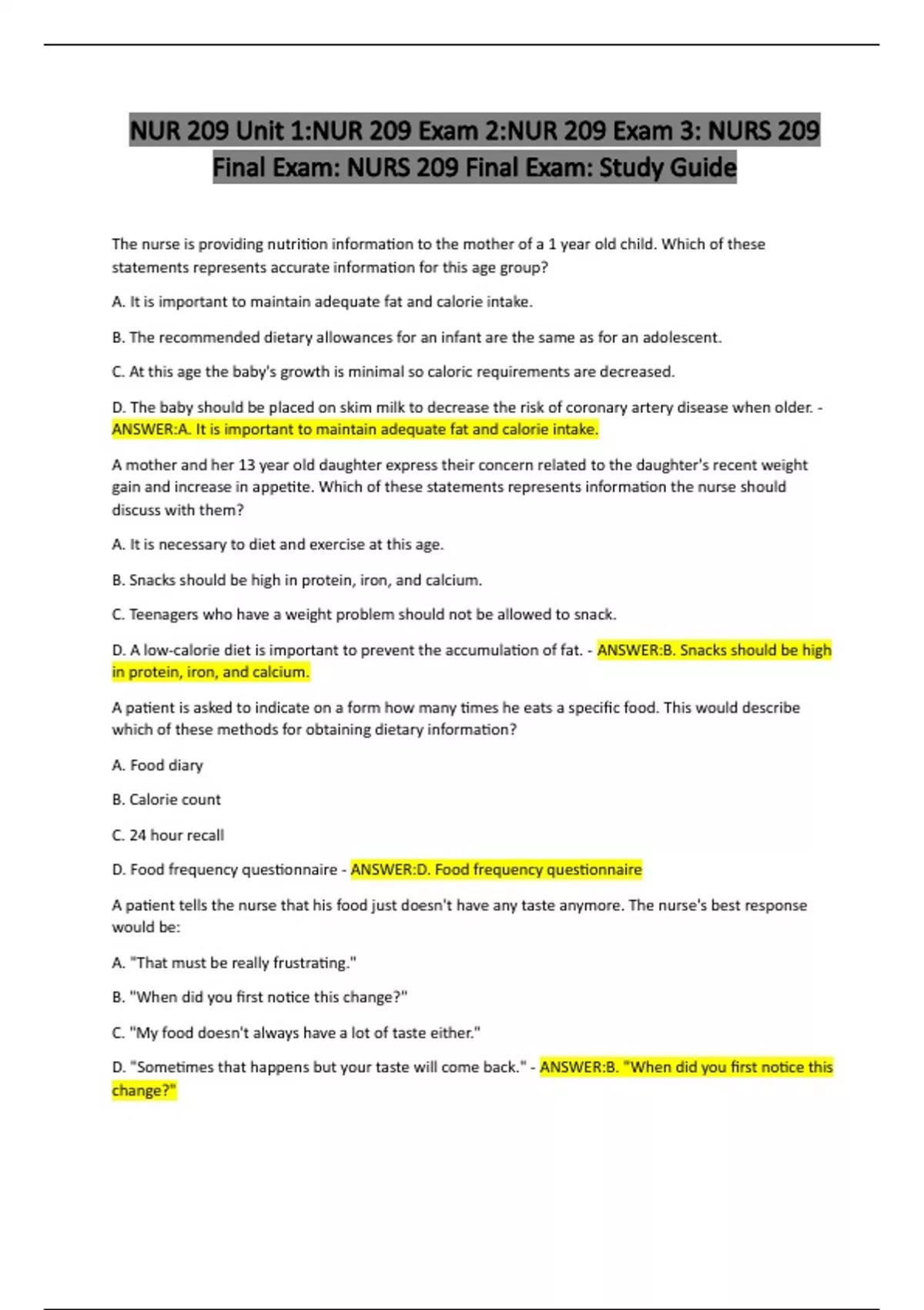 NUR 209 Unit 1:NUR 209 Exam 2:NUR 209 Exam 3: NURS 209 Final Exam: NURS 209 Final Exam: Study Guide