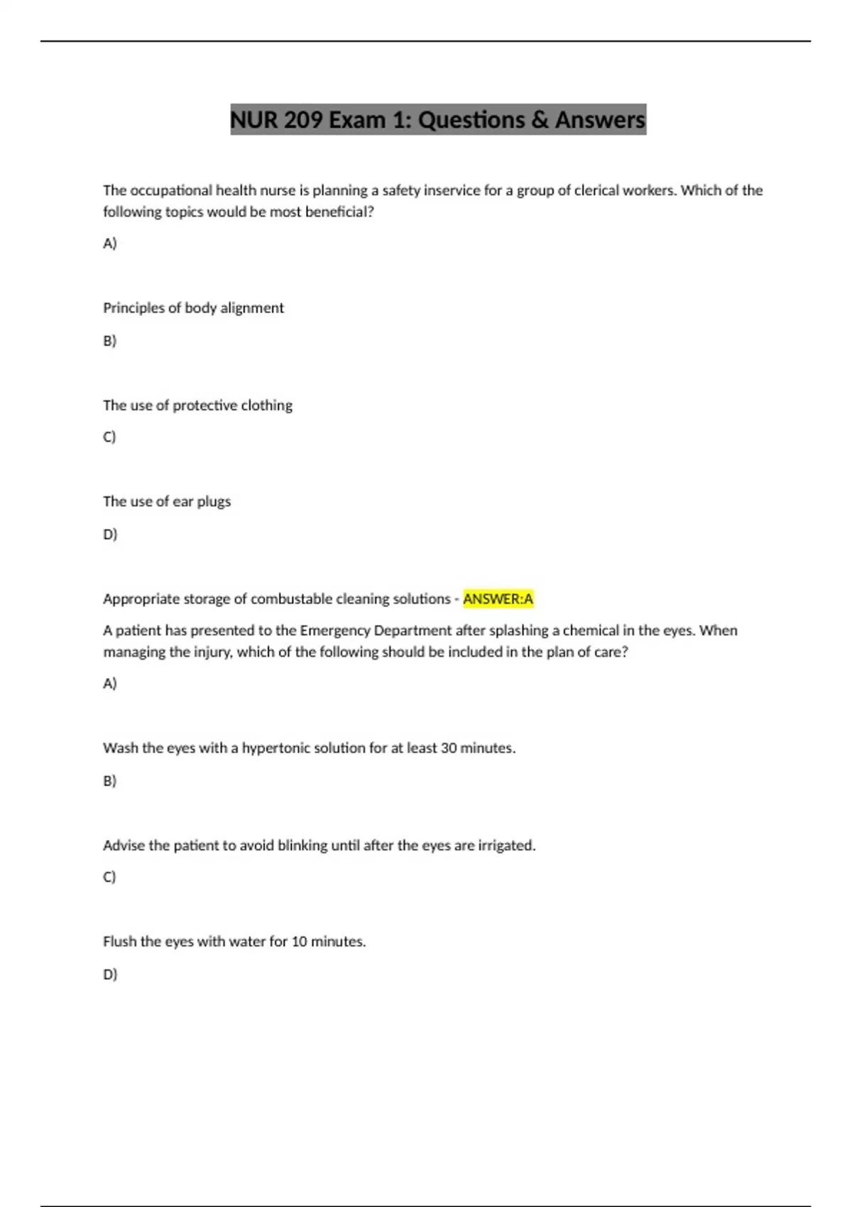 NUR 209 Exam 1: Questions & Answers