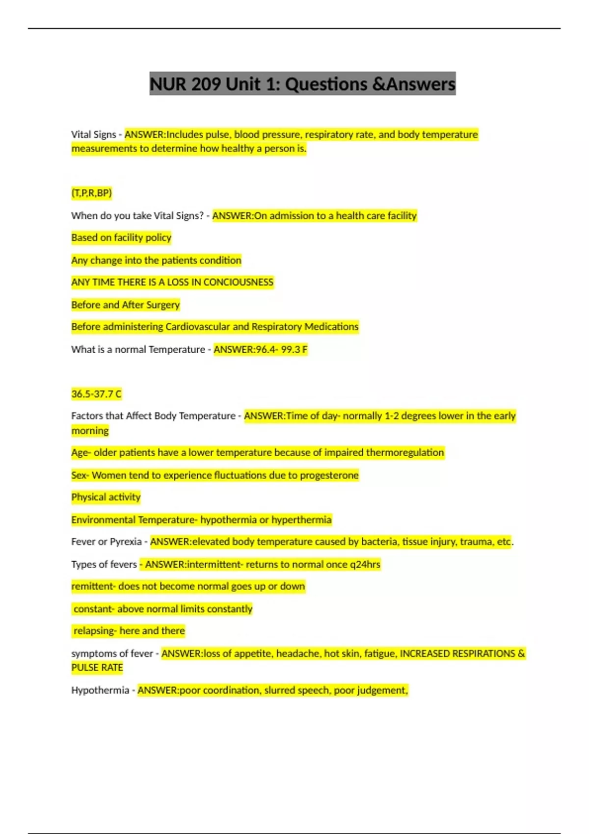 Fever or Pyrexia - ANSWER:elevated body temperature caused by bacteria, tissue injury, trauma, etc.