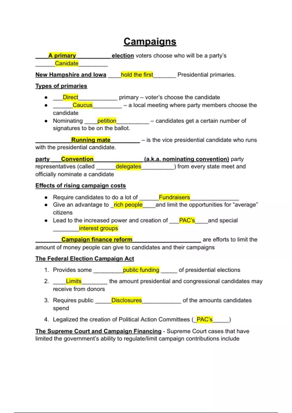 The Supreme Court and Campaign Financing - Supreme Court cases that have