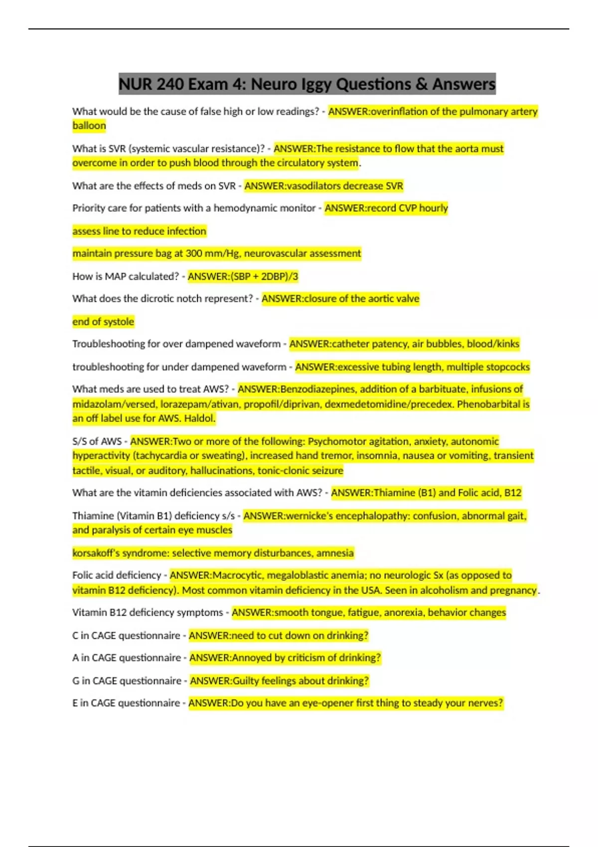 Troubleshooting for over dampened waveform - ANSWER:catheter patency, air bubbles, blood/kinks