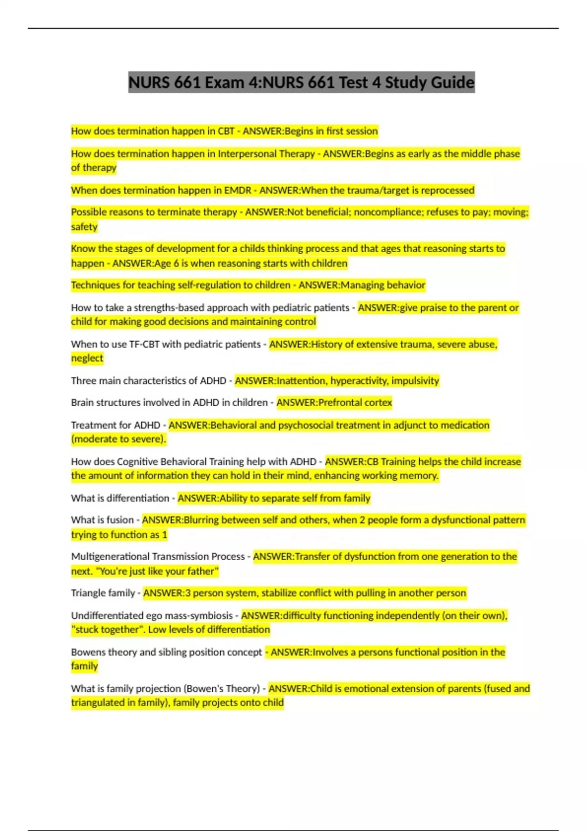 Possible reasons to terminate therapy - ANSWER:Not beneficial; noncompliance; refuses to pay; moving;