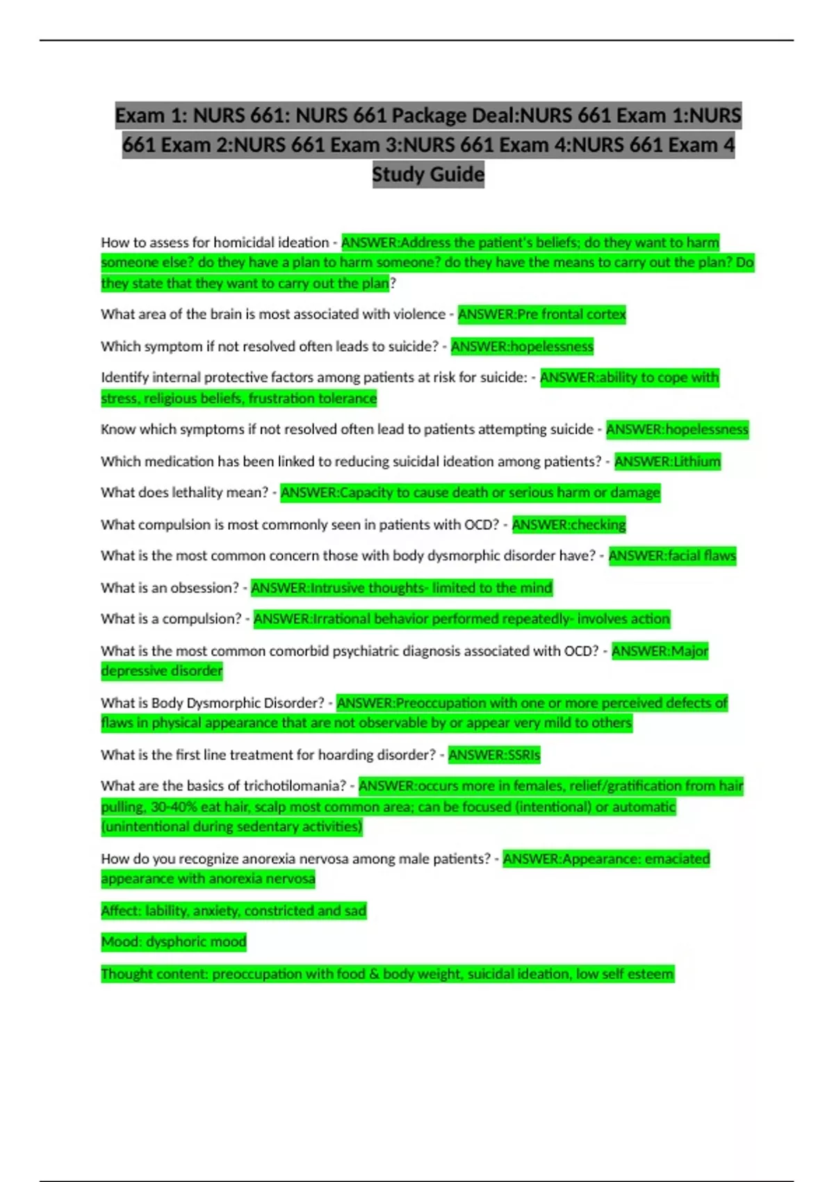 Exam 1: NURS 661: NURS 661 Package Deal:NURS 661 Exam 1:NURS 661 Exam 2:NURS 661 Exam 3:NURS 661 Exam 4:NURS 661 Exam 4 Study Guide