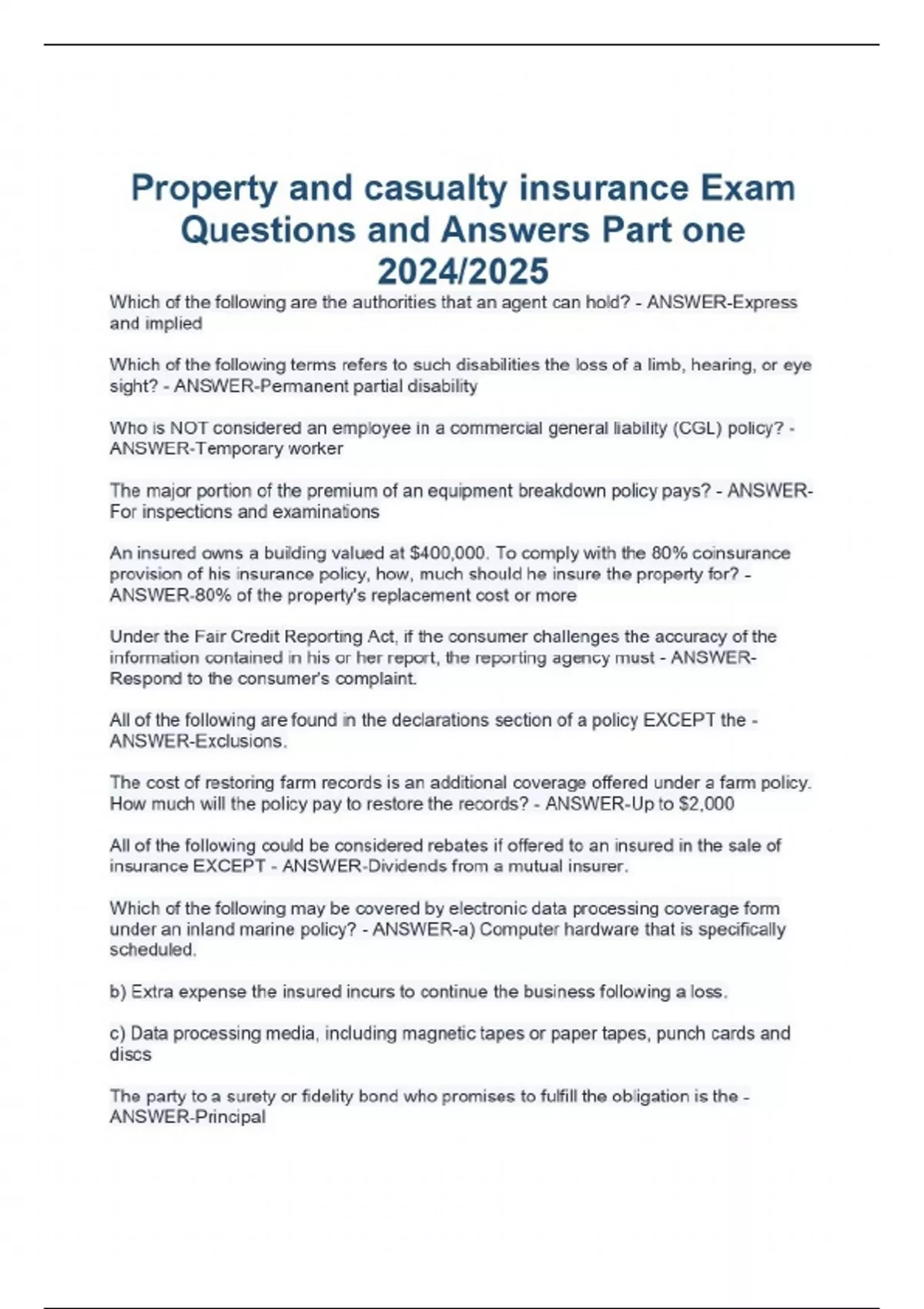 Property and casualty insurance Exam Questions and Answers Part one 2024/2025