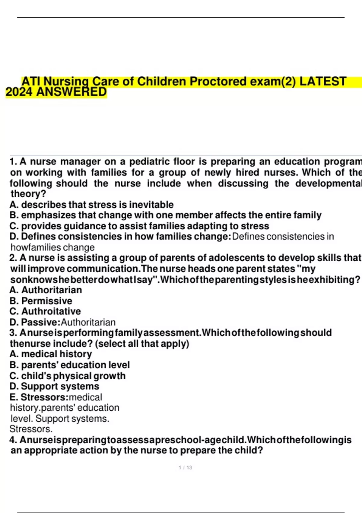 ATI Nursing Care of Children Proctored exam(2) LATEST