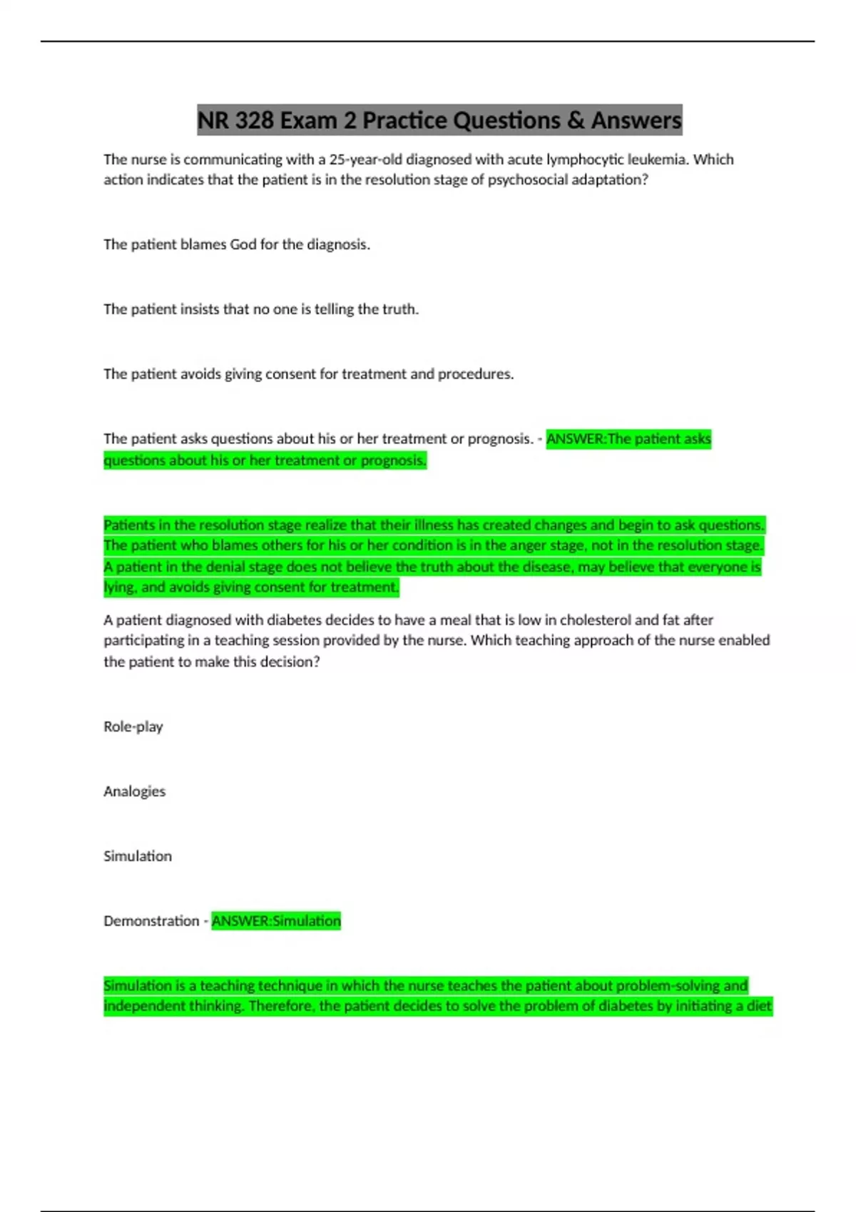 Simulation is a teaching technique in which the nurse teaches the patient about problem-solving and