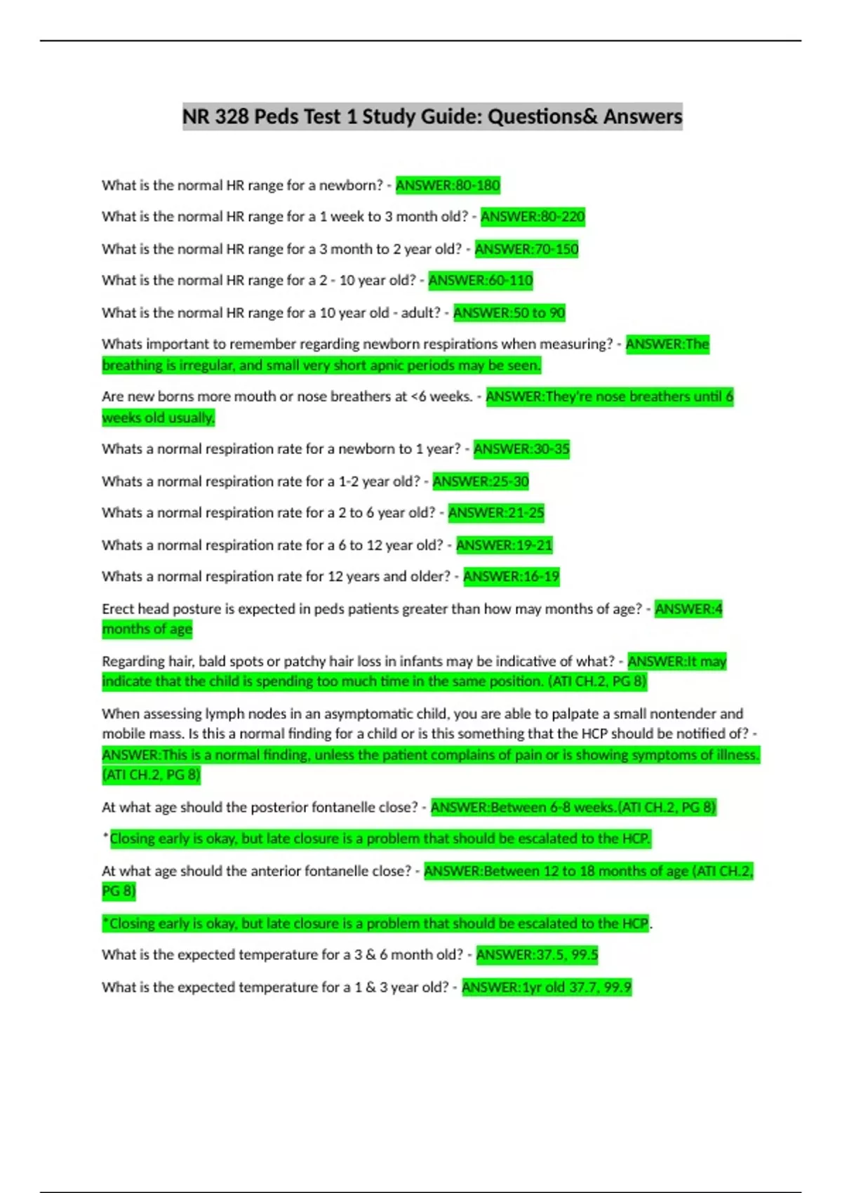 NR 328 Peds Test 1 Study Guide: Questions& Answers