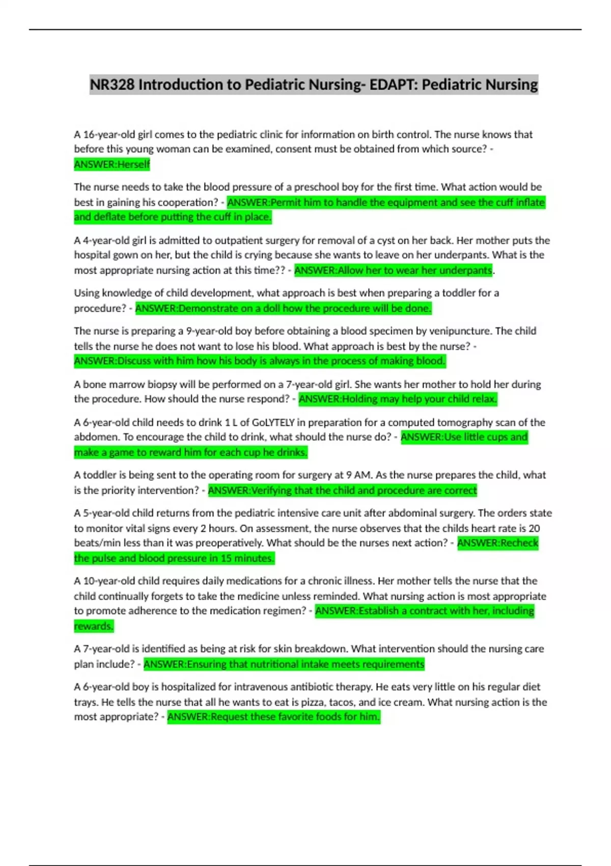 NR328 Introduction to Pediatric Nursing- EDAPT: Pediatric Nursing