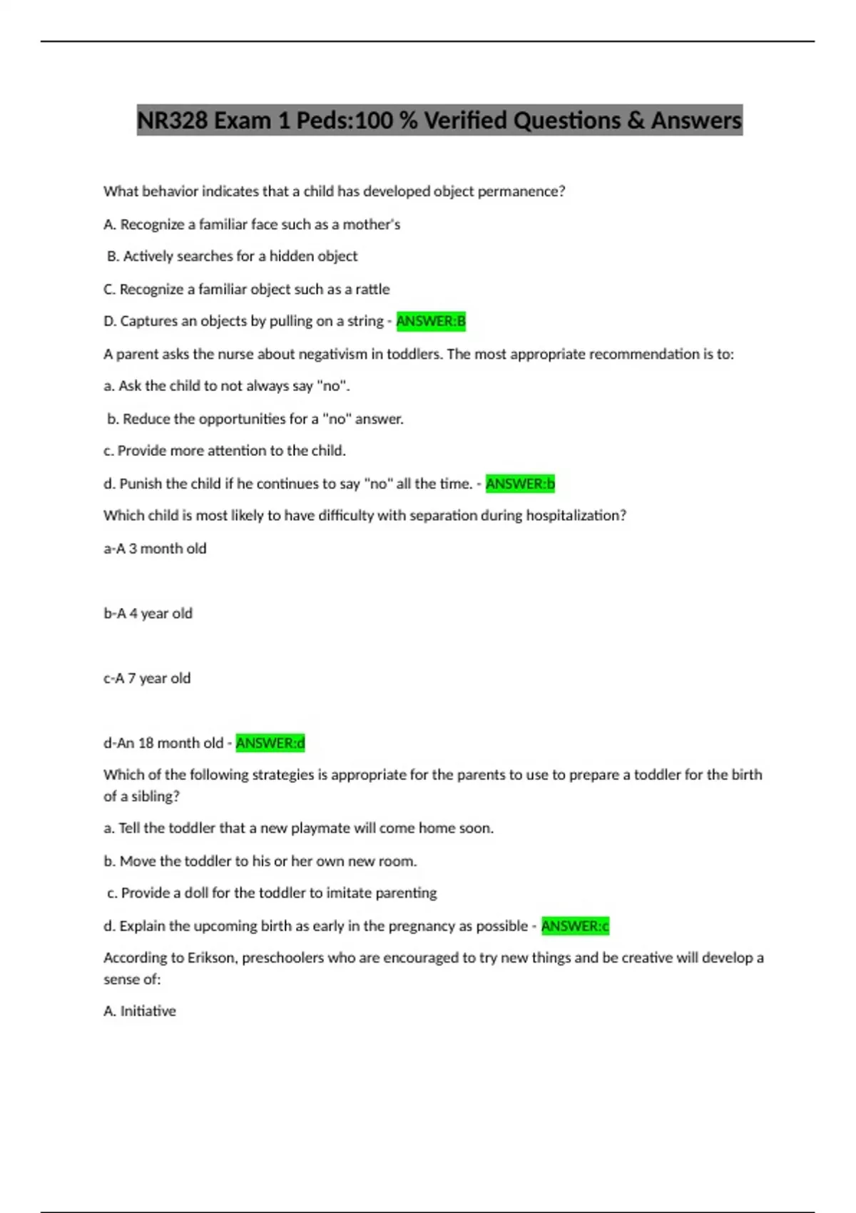 d. Unnecessary information because the child is age 3 years. - ANSWER:b
