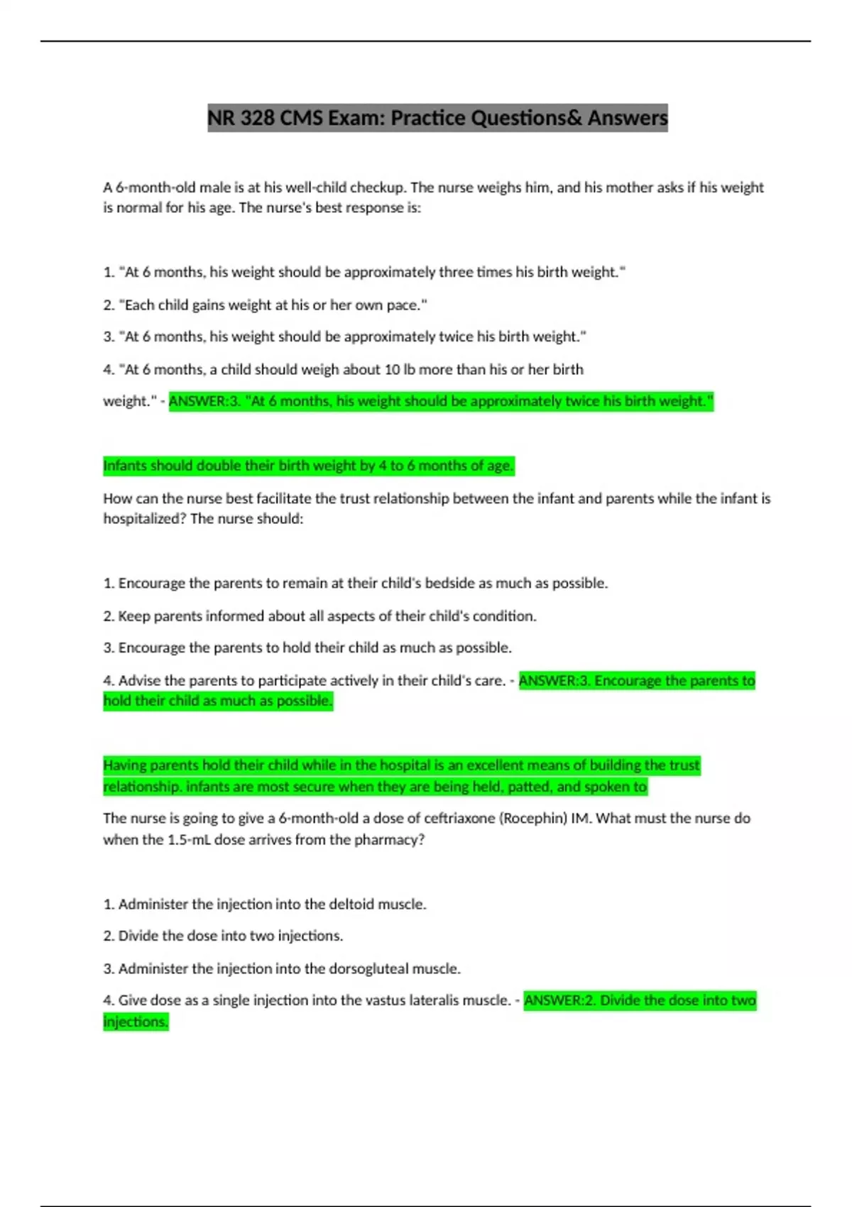 NR 328 CMS Exam: Practice Questions& Answers