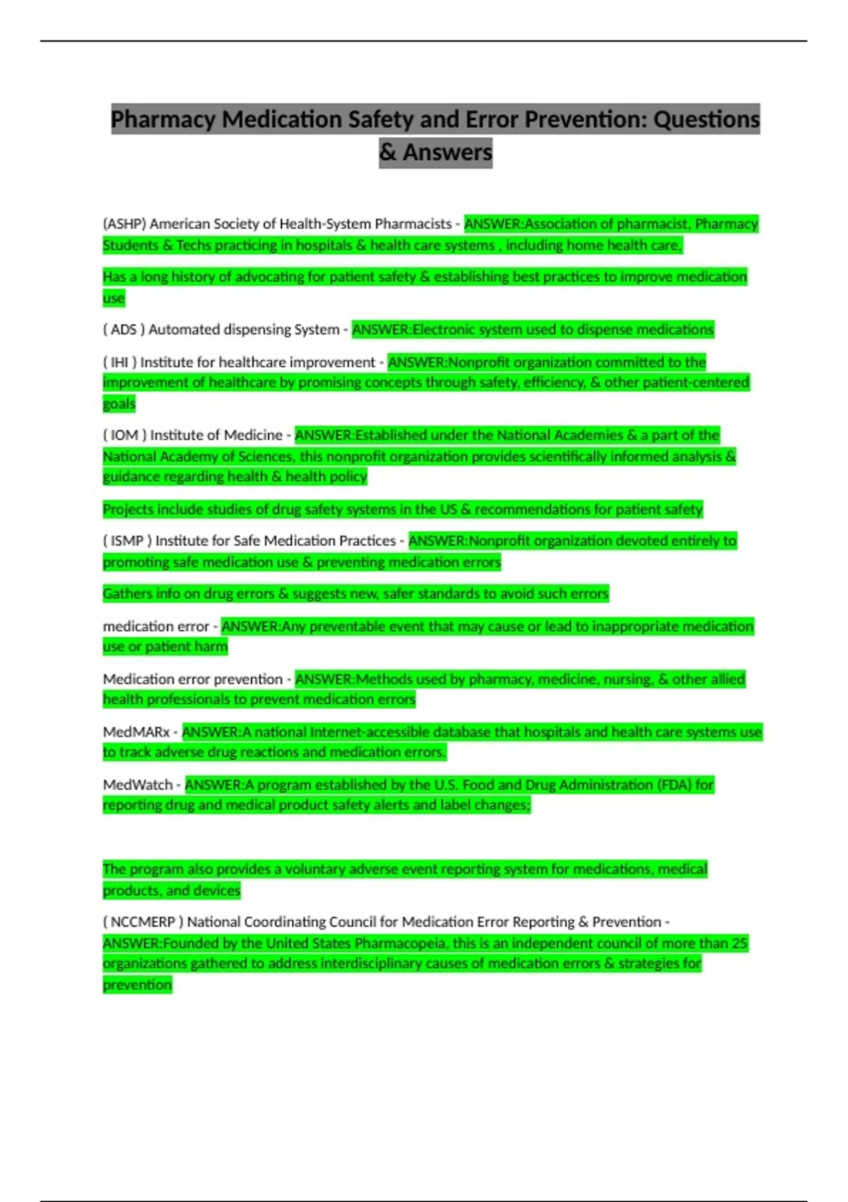 ( NCCMERP ) National Coordinating Council for Medication Error Reporting & Prevention -