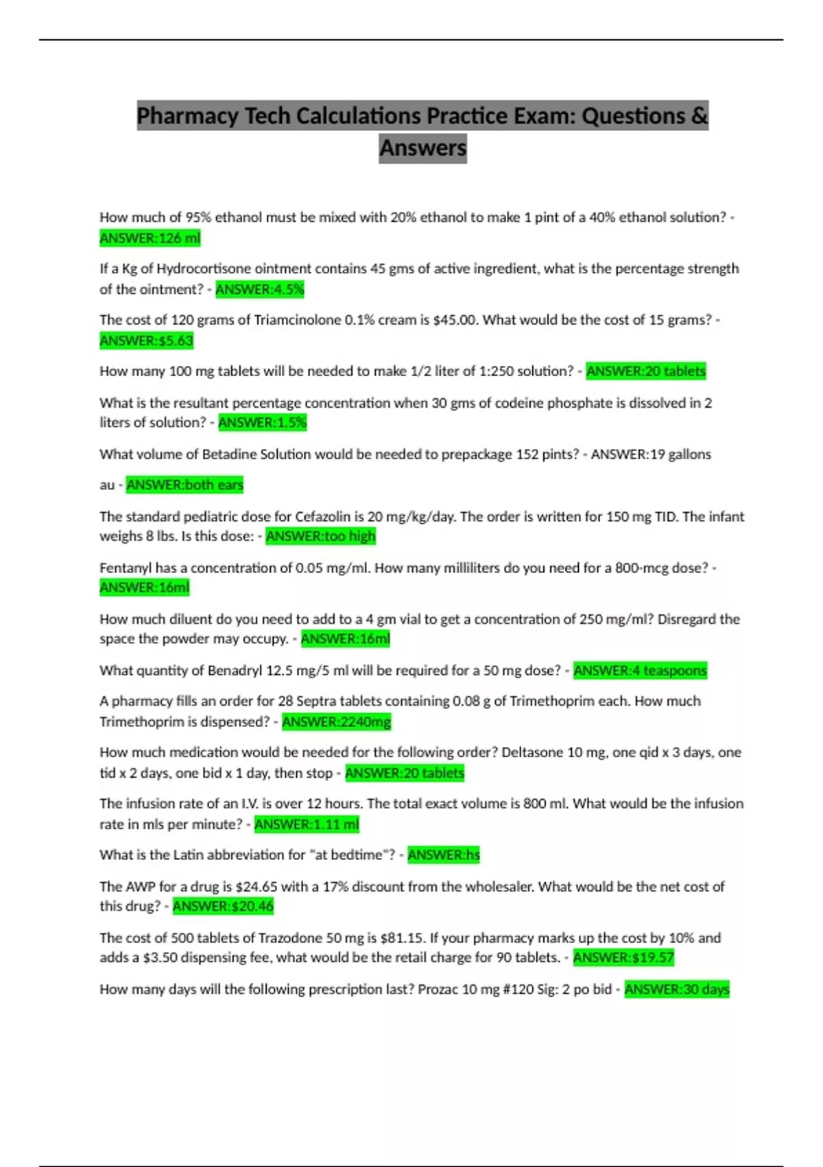 ml/hr. What amount of KCl will Mr. Smith receive per hour? - ANSWER:2.5 meq/hr