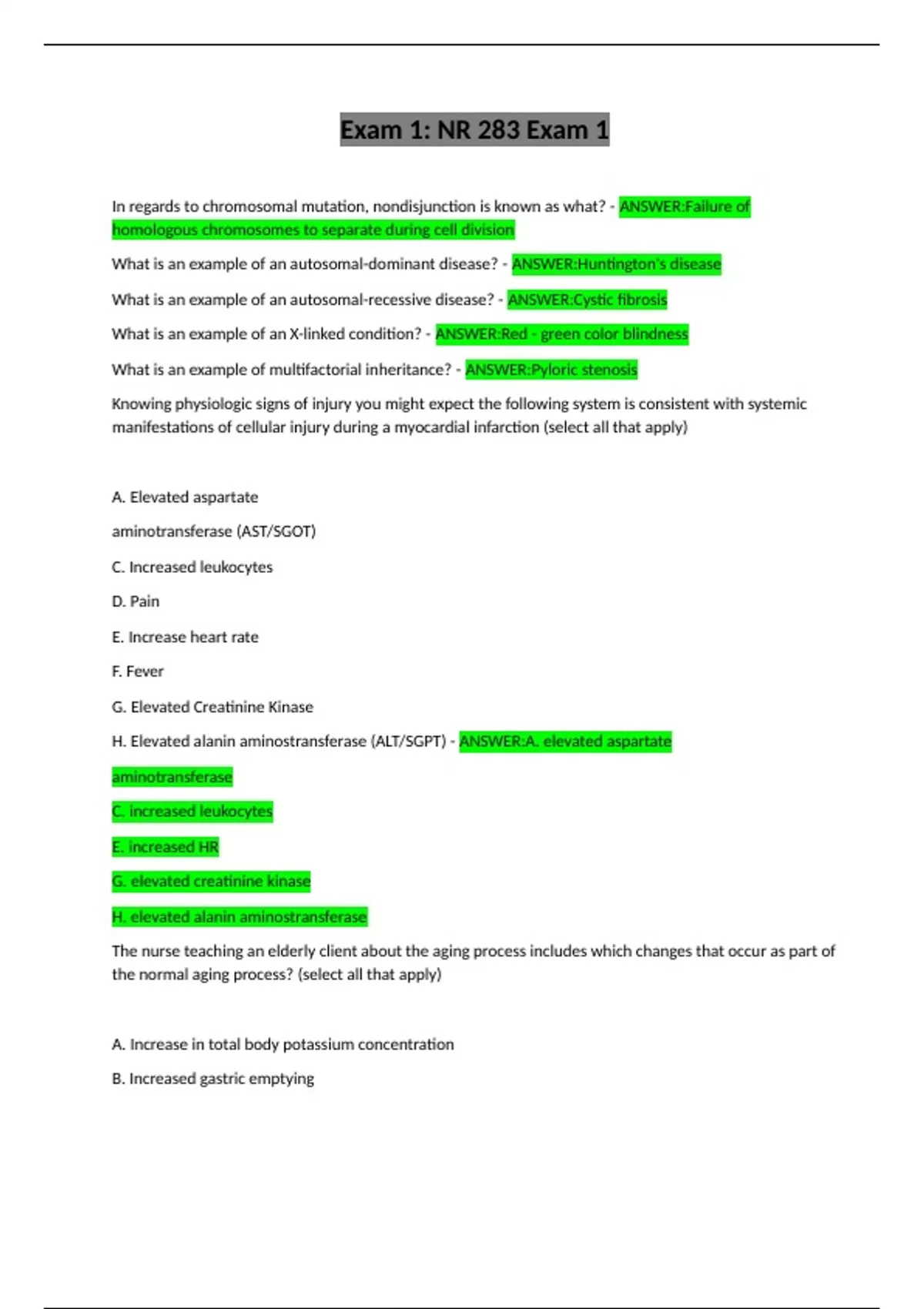 H. Elevated alanin aminostransferase (ALT/SGPT) - ANSWER:A. elevated aspartate