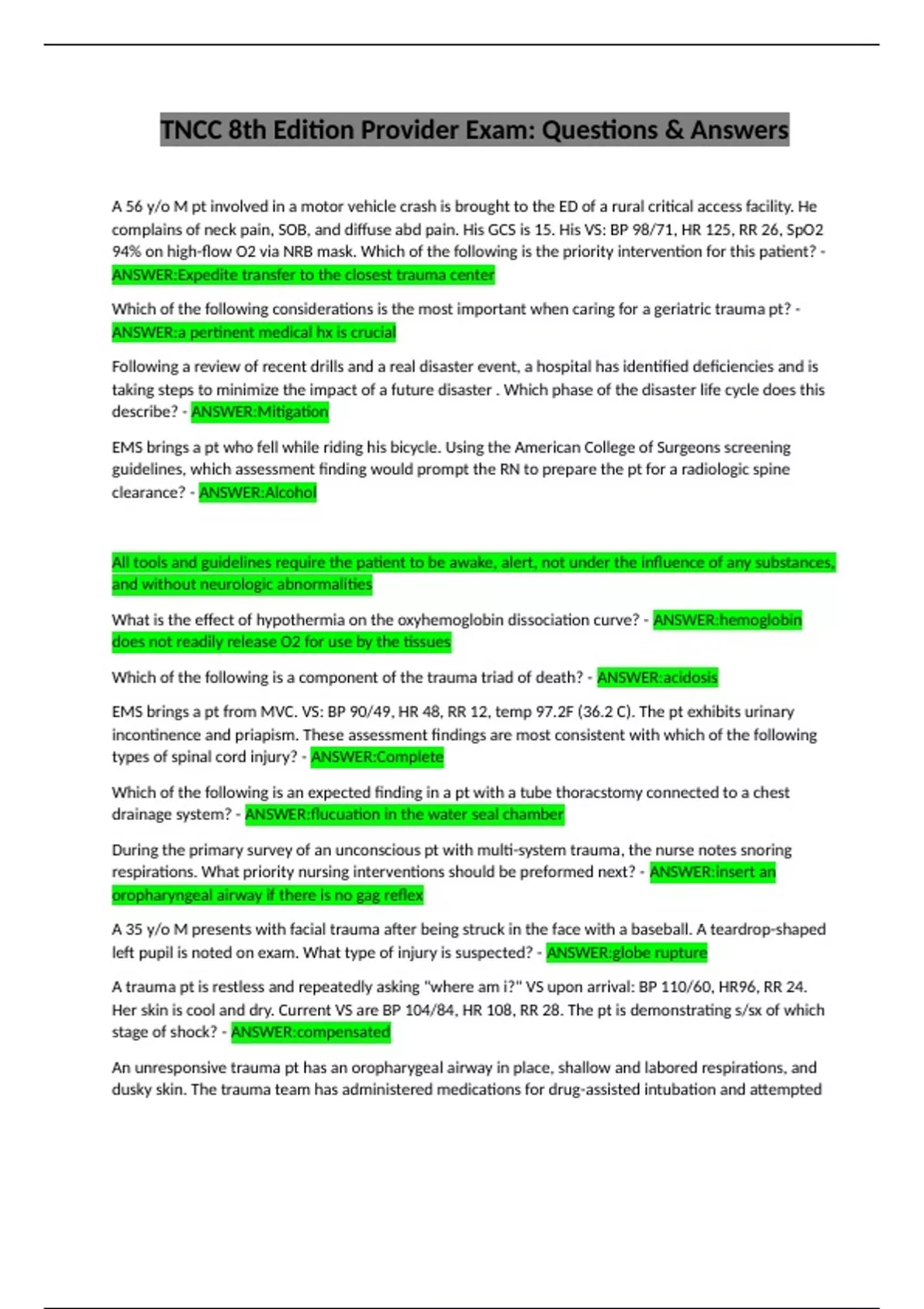 TNCC 8th Edition Provider Exam: Questions & Answers