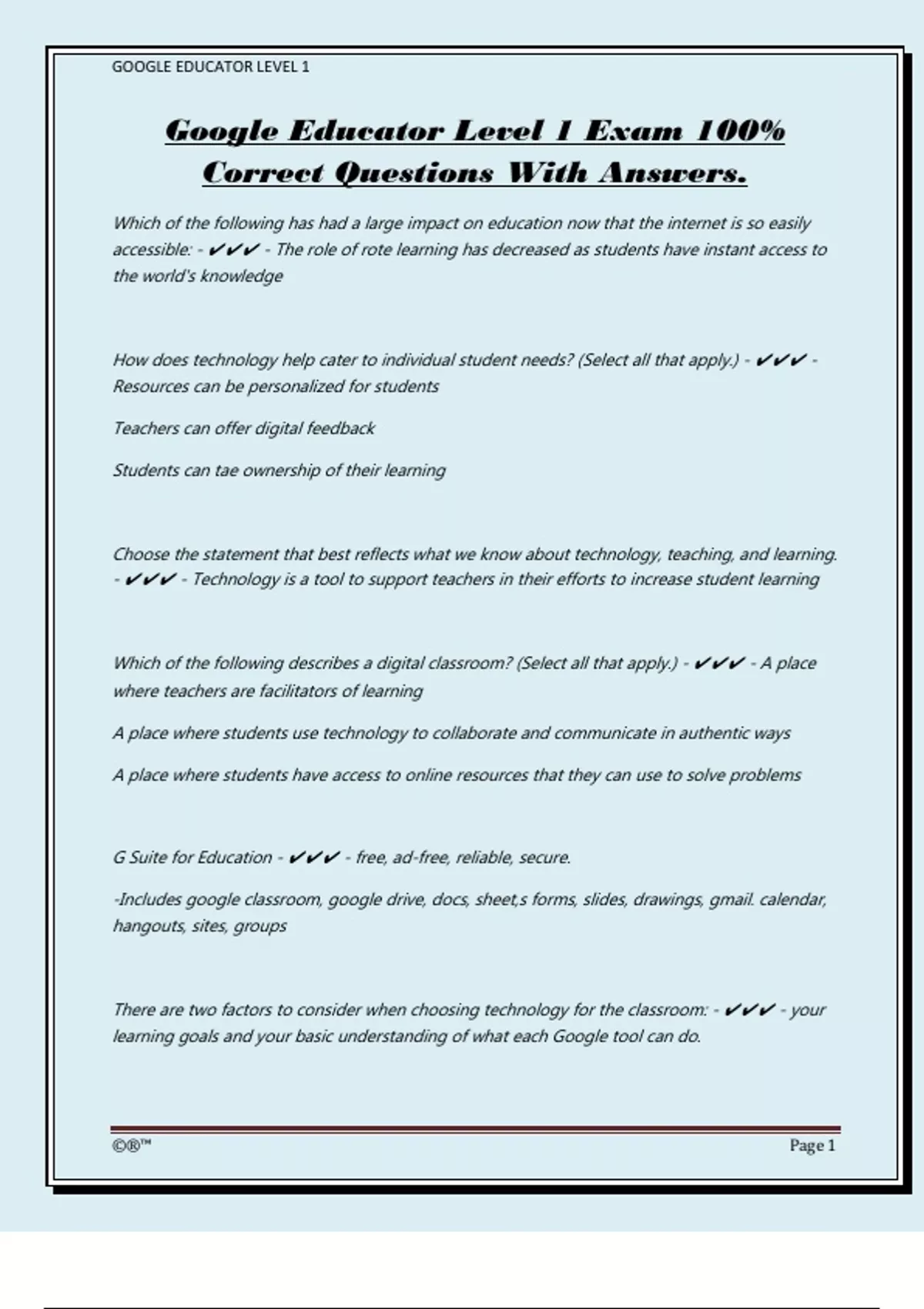 Google Educator Level 1 Exam 100%