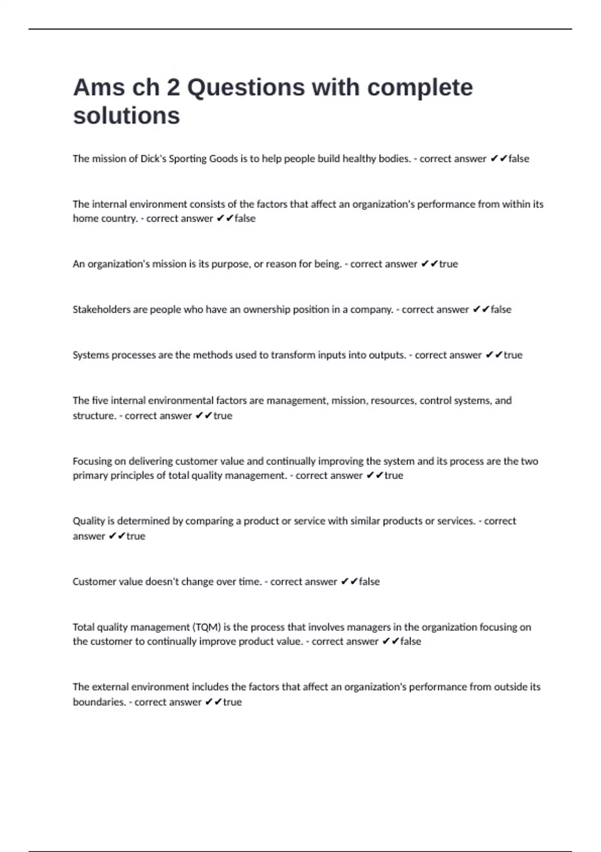 business environment are the factors that make up the external environment. - correct answer ✔✔false