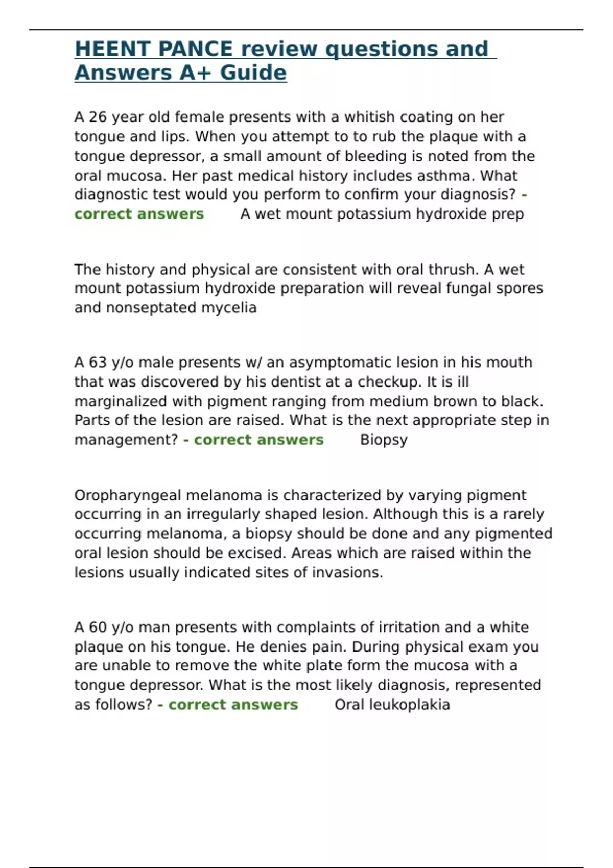 as follows? - correct answers✅✅Oral leukoplakia