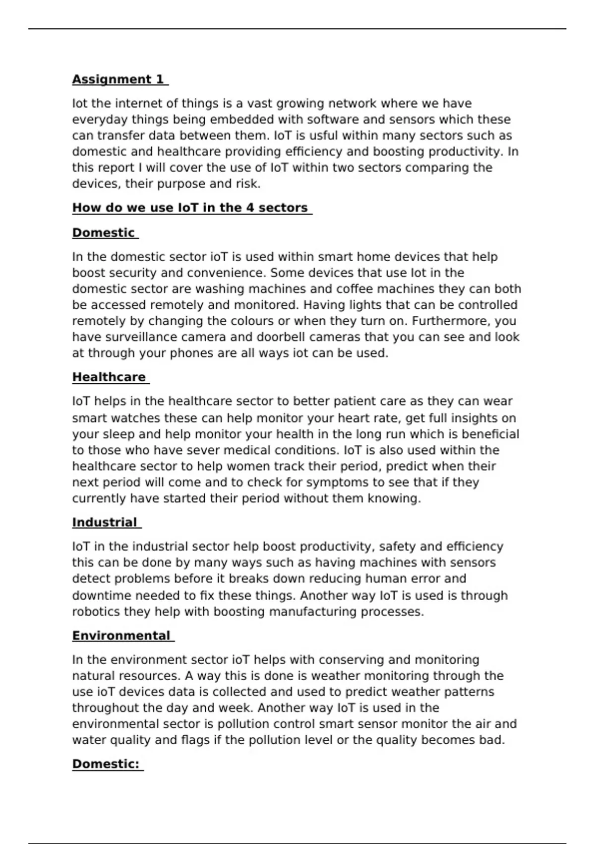 this report I will cover the use of IoT within two sectors comparing the