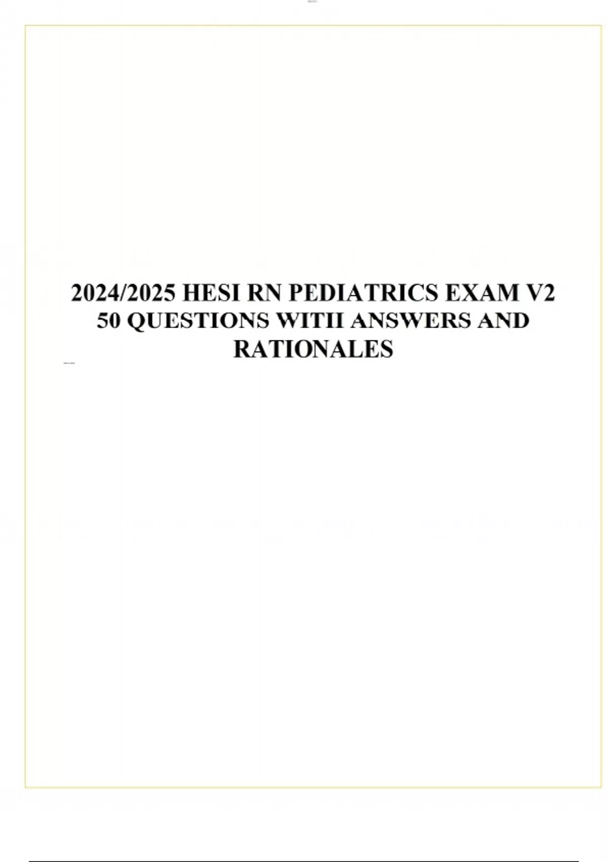 2024/2025 HESI RN PEDIATRICS EXAM V2 50 QUESTIONS WITH ANSWERS AND RATIONALES