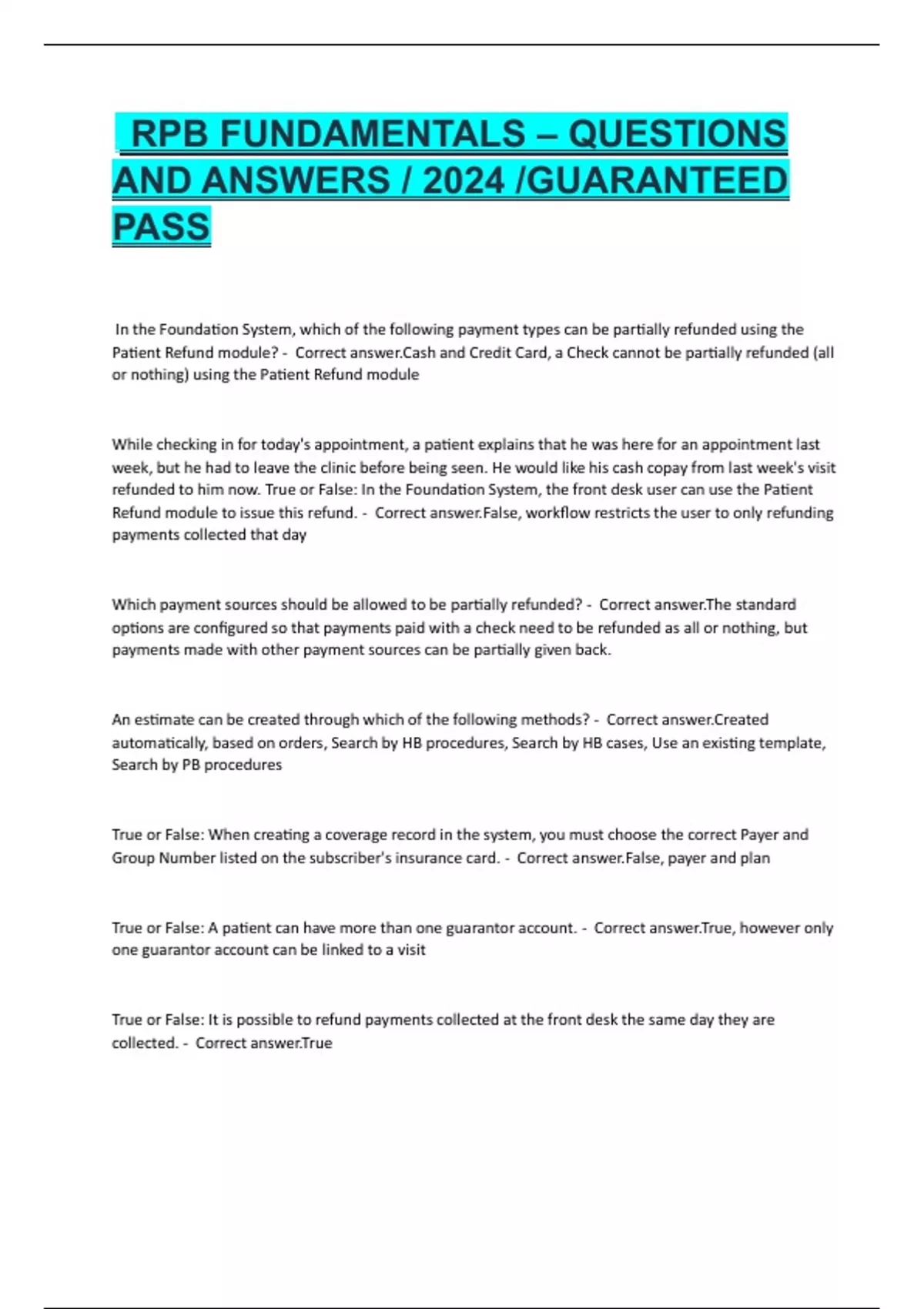 Patient Refund module? - Correct answer.Cash and Credit Card, a Check cannot be partially refunded (all