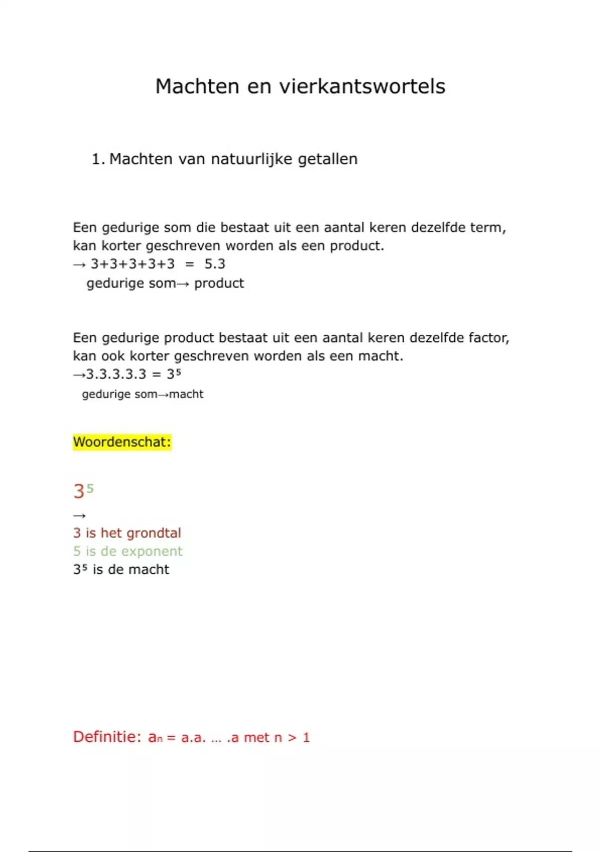 Hier is een kleine samenvatting over machten en vierkantswortels, vooral voor 1ste graders. Deze stof komt uit het boek "Nando".