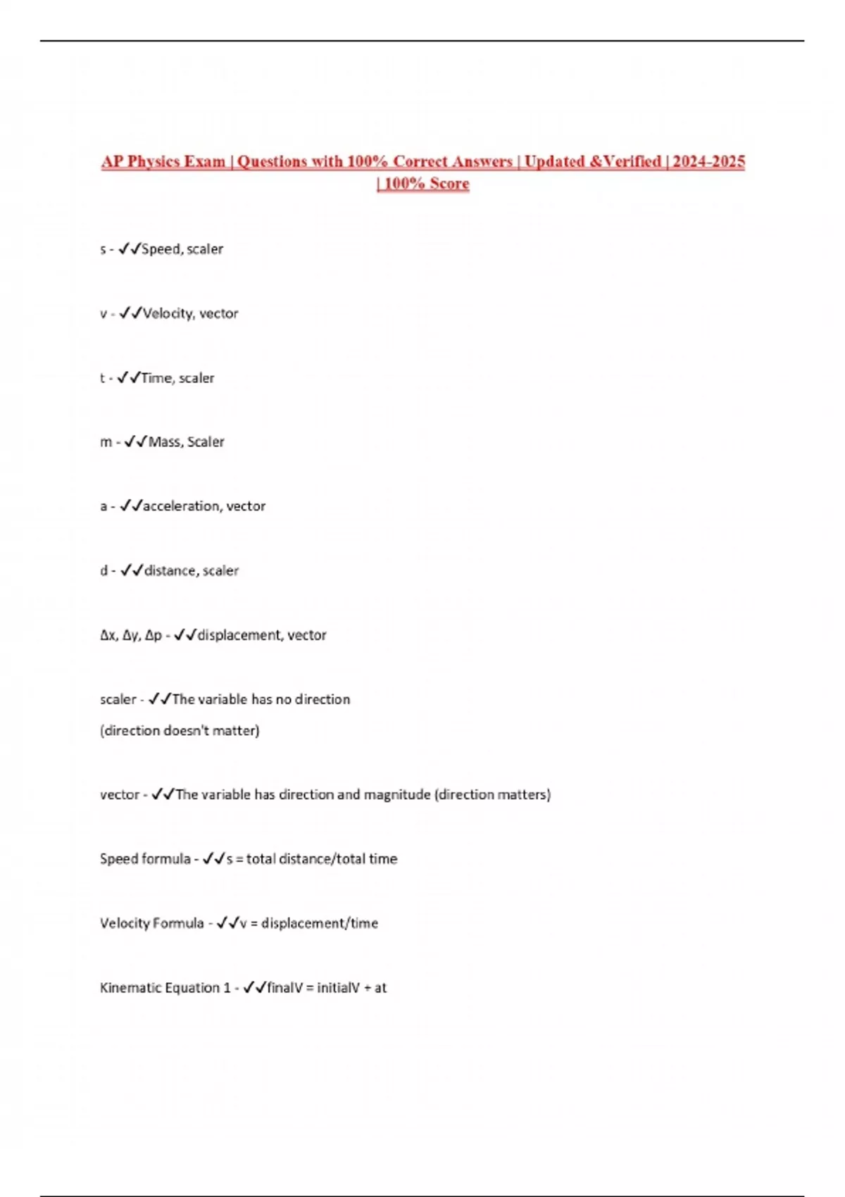 AP Physics Exam | Questions with 100% Correct Answers | Updated &Verified | | 100% Score
