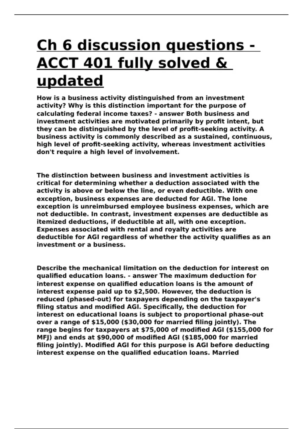 Ch 6 discussion questions - ACCT 401 fully solved & updated