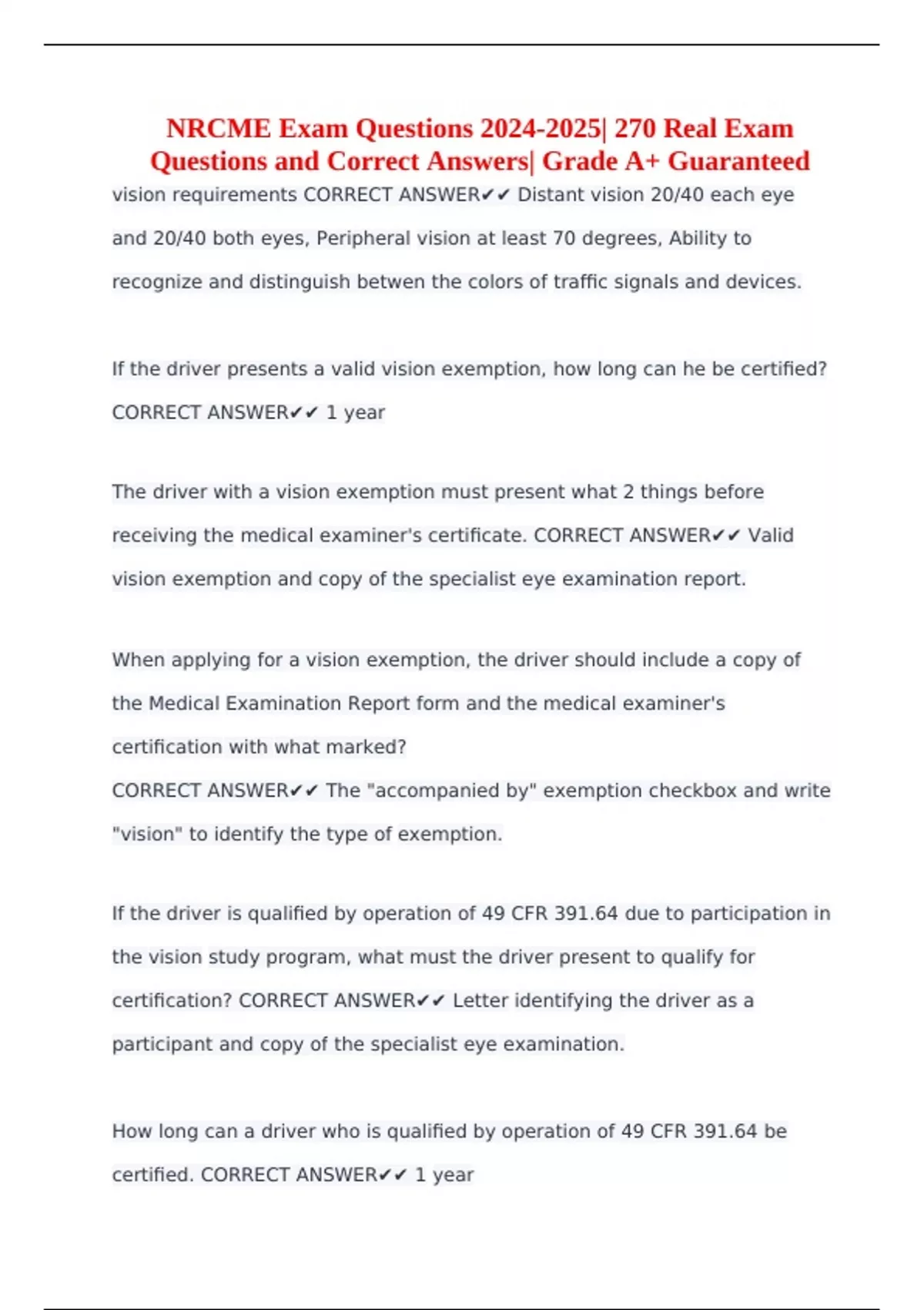 NRCME Exam Questions | 270 Real Exam Questions and Correct Answers| Grade A+ Guaranteed