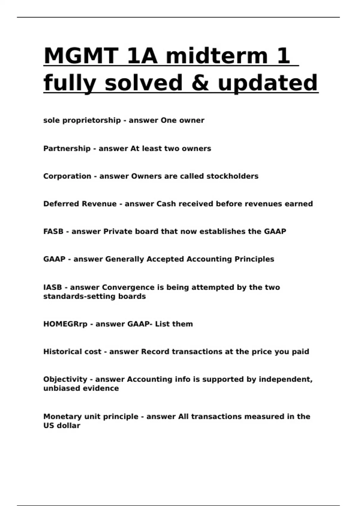 MGMT 1A midterm 1 fully solved & updated.