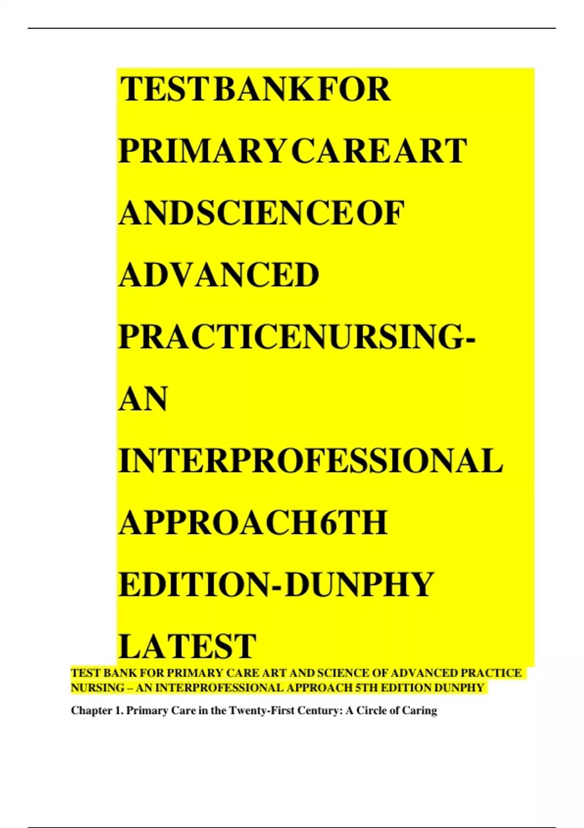 TEST BANK FOR PRIMARY CARE ART AND SCIENCE OF ADVANCED PRACTICENURSINGAN INTERPROFESSIONAL APPROACH 6TH EDITION-DUNPHY LATEST