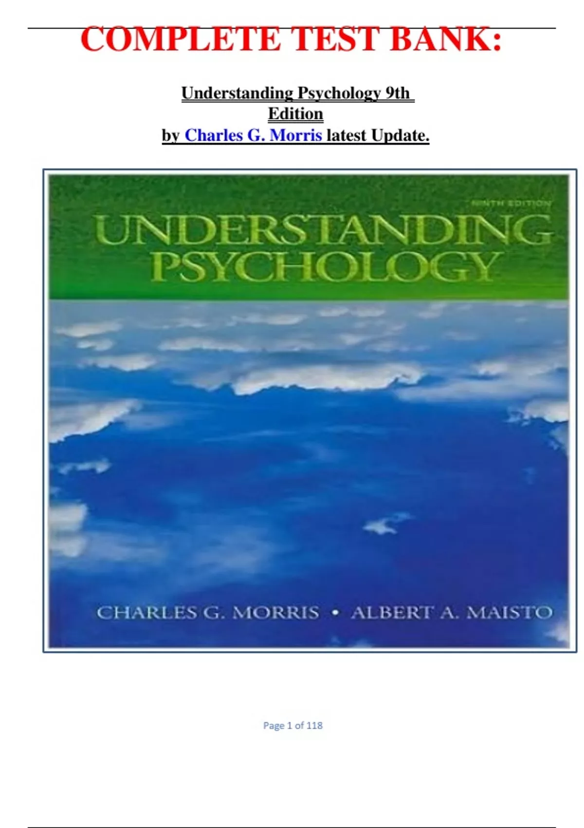 COMPLETE TEST BANK: Understanding Psychology 9th Edition by Charles G. Morris latest Update.